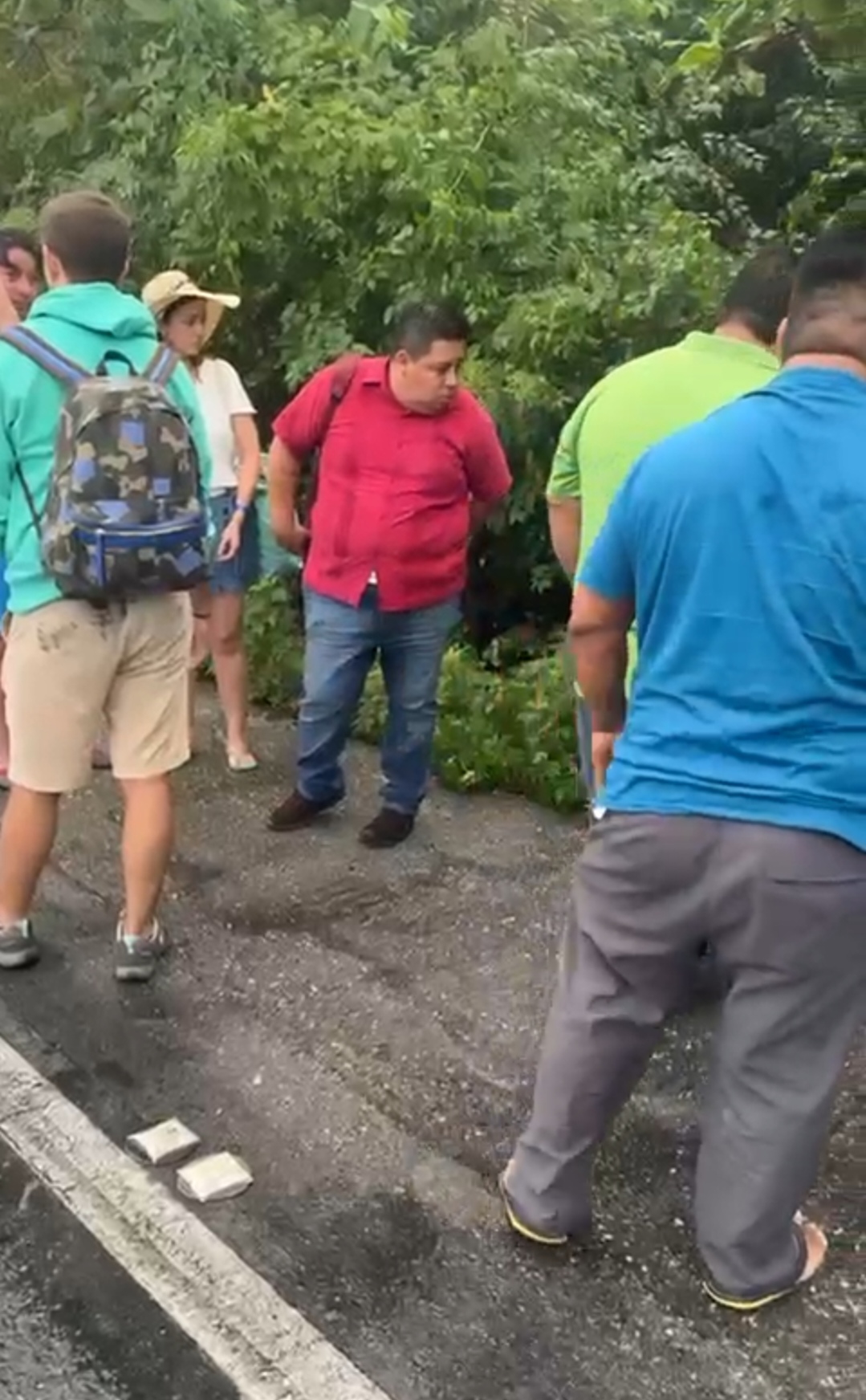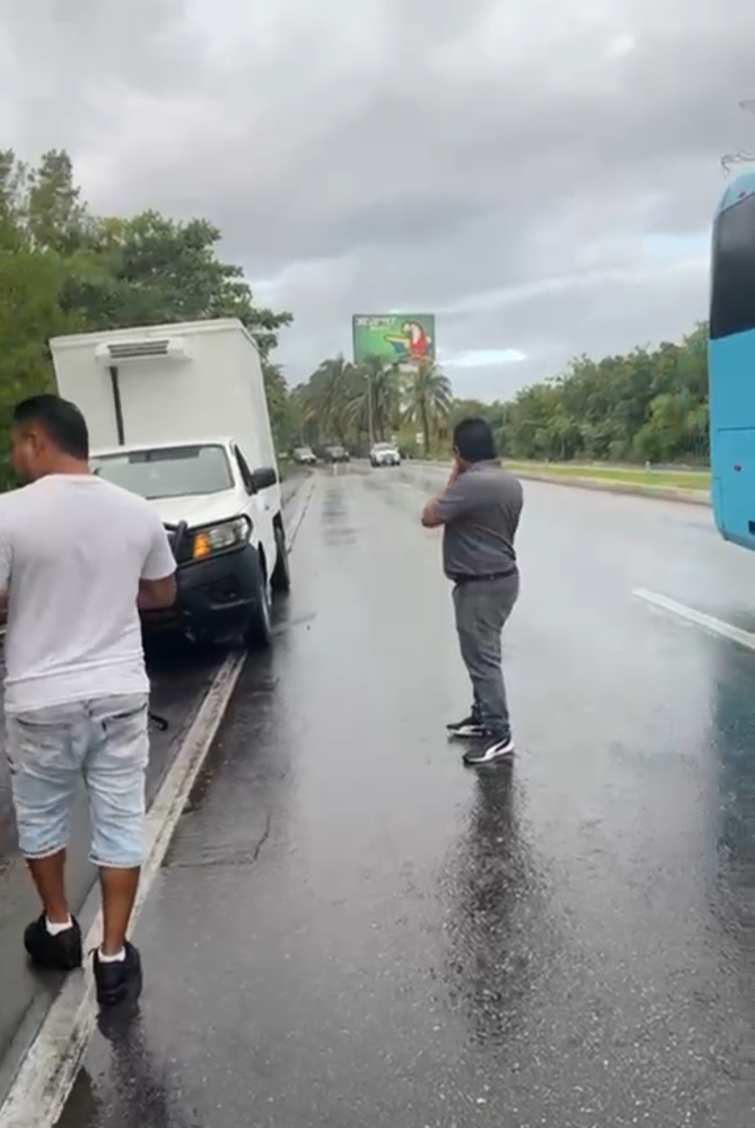 El incidente ocurrió en las inmediaciones de la glorieta de Fonatur, donde automovilistas que transitaban por la zona detuvieron su marcha para auxiliar a los ocupantes del automóvil gris, antes de la llegada de las autoridades.