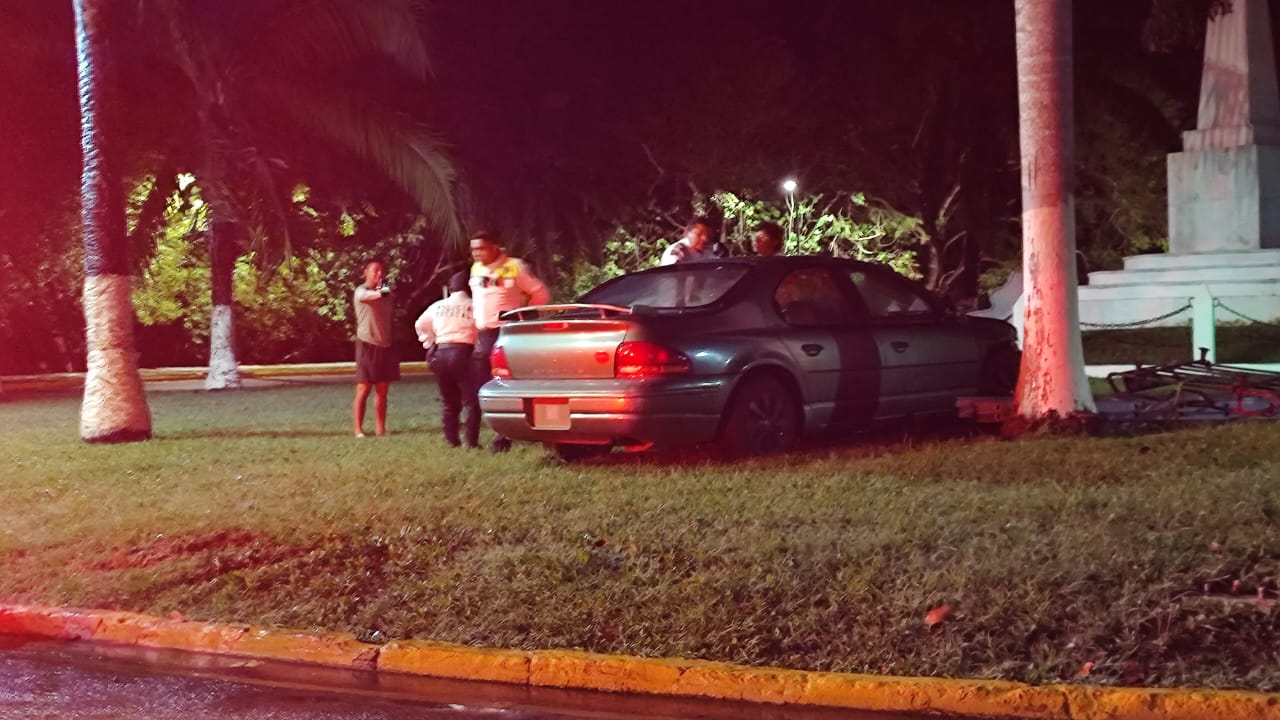 CHETUMAL, 10 de octubre. – La noche de este jueves, un vehículo color verde protagonizó un insólito accidente al quedar varado en medio de la glorieta ubicada en el cruce del Boulevard Bahía con la avenida Insurgentes, una de las zonas de mayor circulación vehicular en la capital del estado. El incidente, que no dejó personas lesionadas, generó sorpresa entre automovilistas y peatones que presenciaron la escena del automóvil sobre el área ajardinada.