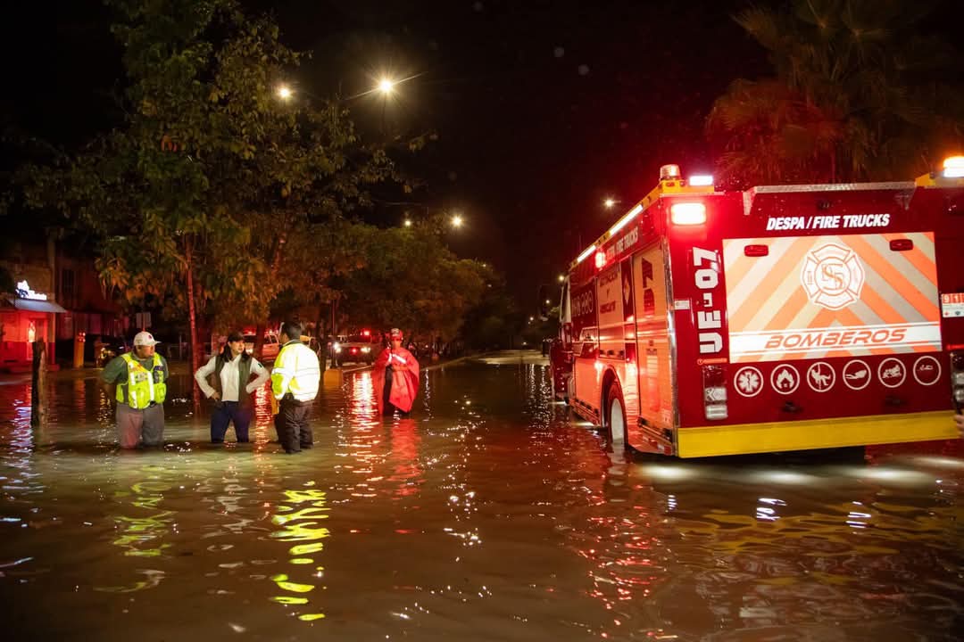 Playa del Carmen, 26 de diciembre.- Autoridades de la Secretaría de Protección Civil, Prevención de Riesgos y Bomberos, así como de Servicios Públicos Municipales, realizaron recorridos en puntos críticos de la ciudad en los que se registraron severos encharcamientos, producto de los fuertes aguaceros provocados por el paso de un canal de baja presión la tarde de este jueves.