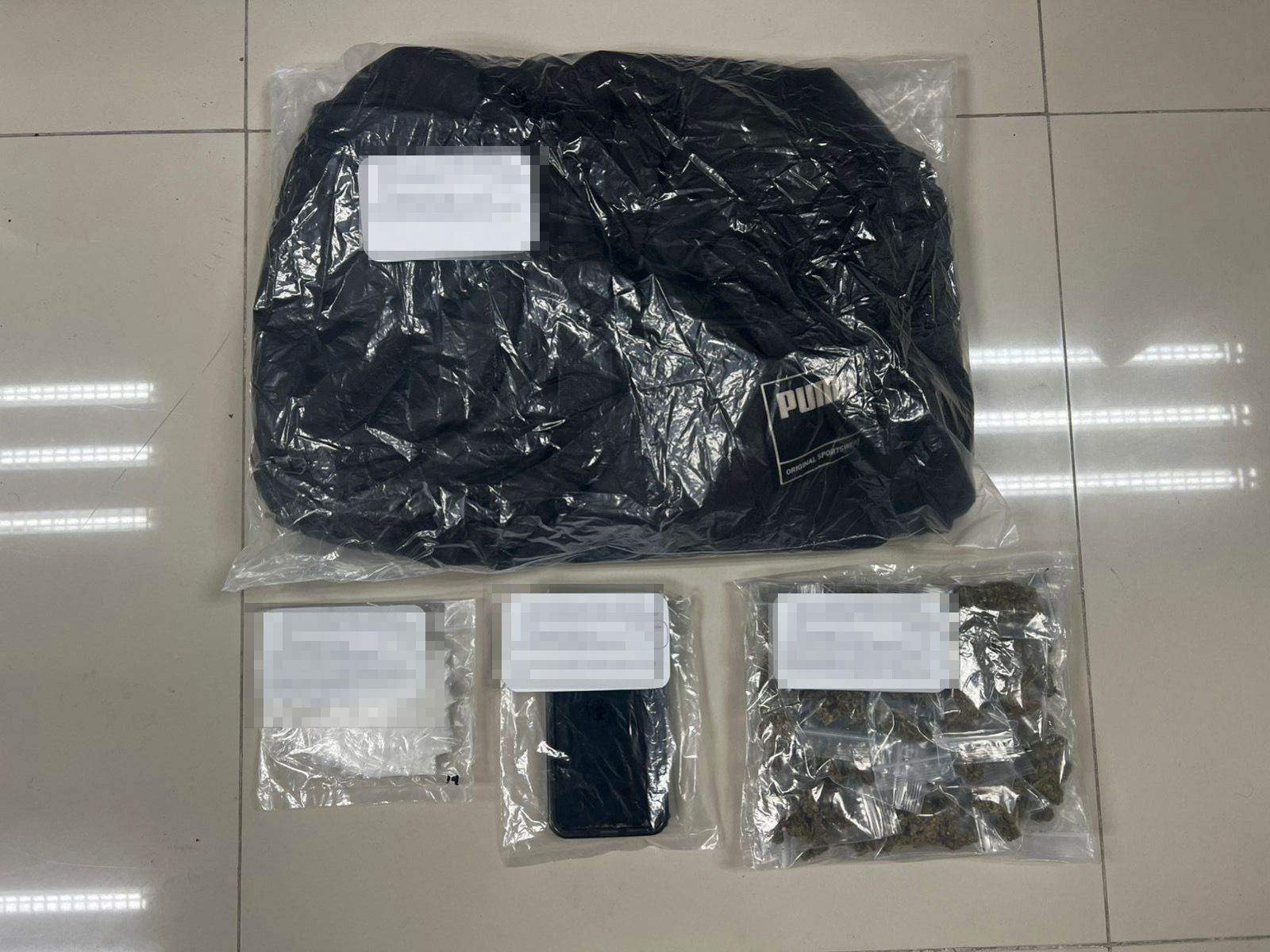 Al realizar la inspección, los oficiales encontraron 29 bolsitas con posible marihuana y 19 dosis de lo que parece ser cristal. También se procedió al aseguramiento de un vehículo Mazda modelo 2020 con placas del estado de Puebla, una bolsa negra y un teléfono celular.