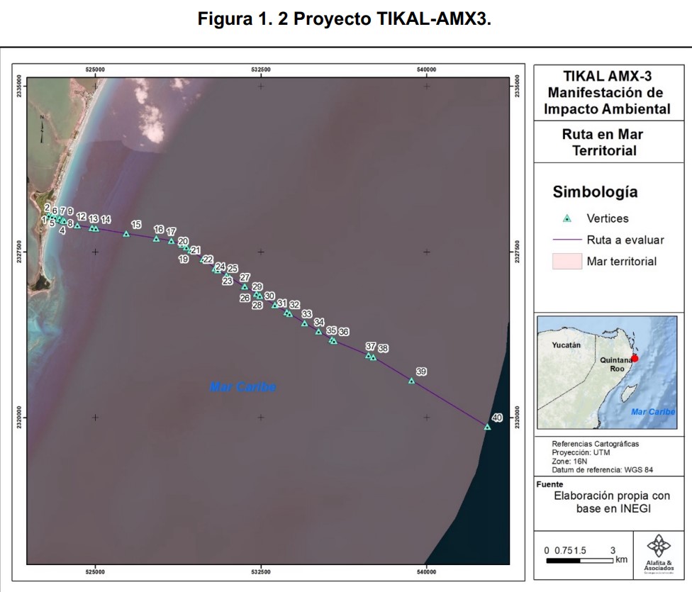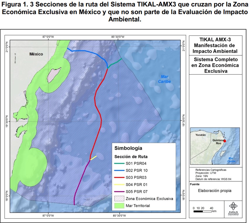 En la parte marina profunda, el tendido coincide con la Reserva de la Biósfera Caribe Mexicano, pero se autorizó porque la instalación se limitará al depósito del cable en el lecho marino, sin obras adicionales que provoquen dispersión de sedimentos o construcción de infraestructura.