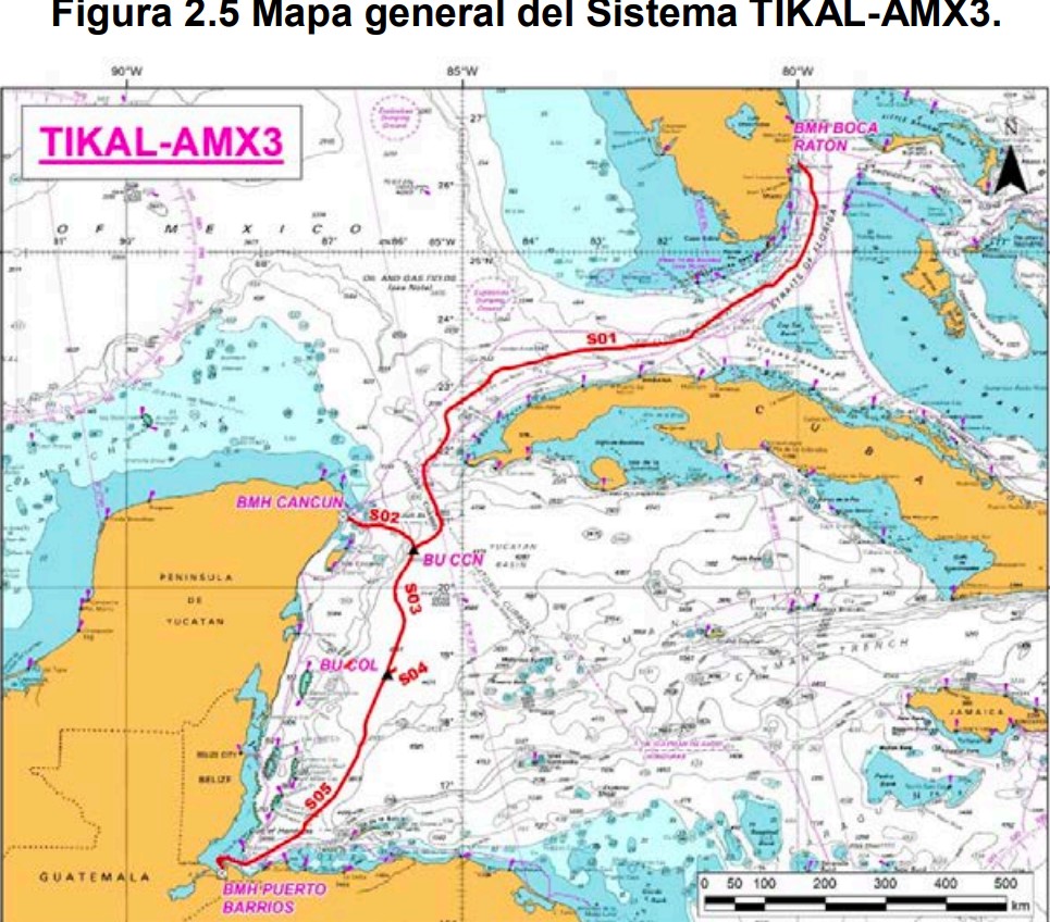 Lo anterior considera la trayectoria principal que conecta a Playa Delfines con el sistema, así como otras secciones que lo conectan con Guatemala y Florida