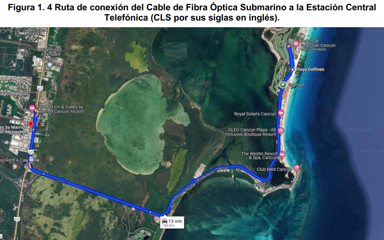 En la parte marina profunda, el tendido coincide con la Reserva de la Biósfera Caribe Mexicano, pero se autorizó porque la instalación se limitará al depósito del cable en el lecho marino, sin obras adicionales que provoquen dispersión de sedimentos o construcción de infraestructura.