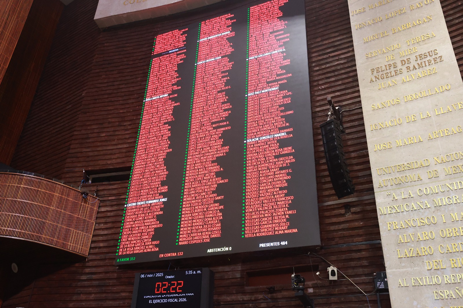 CIUDAD DE MÉXICO, 6 de noviembre.- La madrugada de este jueves 6 de noviembre, la Cámara de Diputados finalizó la aprobación en lo particular el proyecto de Presupuesto de Egresos de la Federación (PEF) para el ejercicio fiscal 2026, en la continuación de la sesión que inició el martes y entró en receso tras la aprobación del proyecto en lo general.