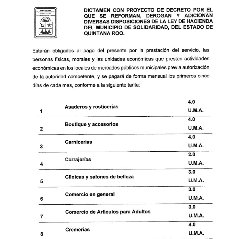 Sin embargo, todavía hay más aumentos de tarifa en la reforma a la Ley de Hacienda Municipal, que resentirán todos los sectores sociales de Playa del Carmen cuando busquen realizar alguna actividad económica o hasta social o de interés familiar.