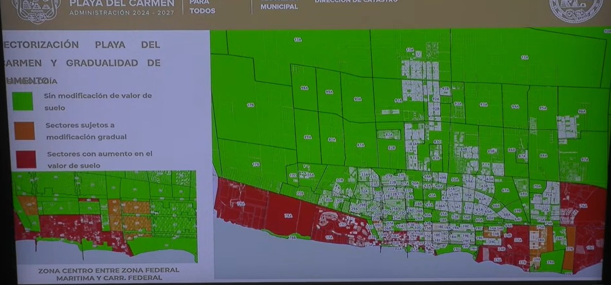 Las zonas donde se aplicarán los incrementos de Impuesto Predial son, principalmente, Playacar, la zona hotelera de norte a sur, la zona centro y la zona Corazón.