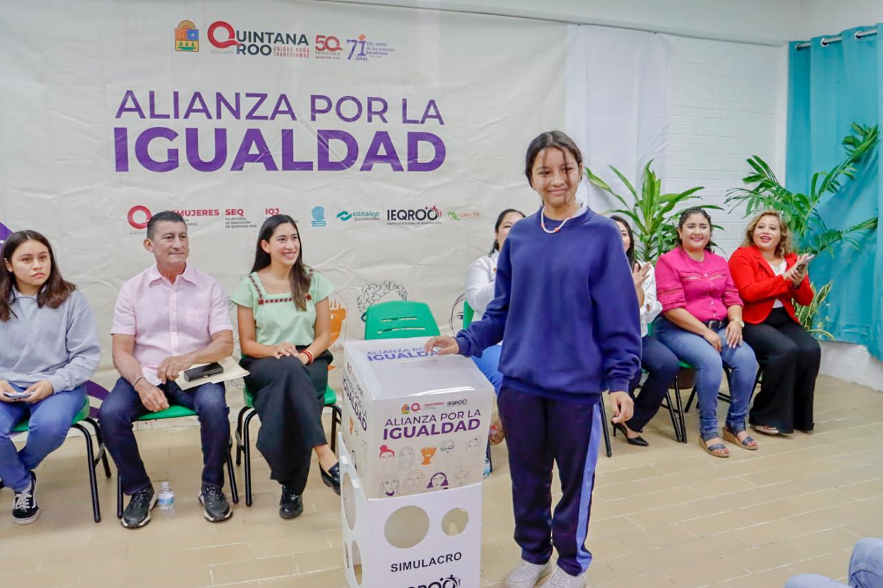 Cabe mencionar que esta estrategia se realiza en colaboración con la Secretaría de Educación del Estado y el Instituto Quintanarroense de la Juventud y tiene como objetivo principal implementar un sistema de participación democrática en las instituciones educativas de nivel medio superior, incluyendo los planteles del Colegio de Bachilleres, CONALEP, CECyTE, Eva Sámano, CBTIs y Telebachilleratos Comunitarios de Quintana Roo.