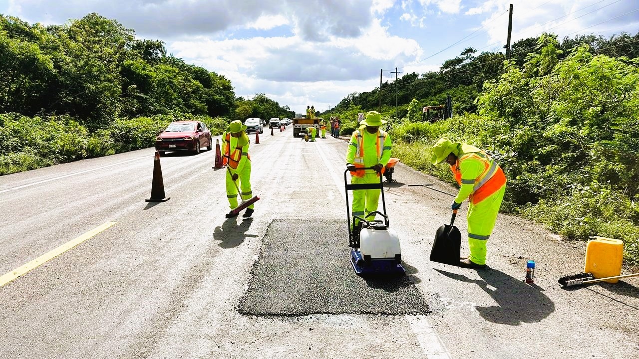 Avanza “Bacheton” en Carreteras de Quintana Roo, SICT Trabaja en 3 Zonas y 6 Frentes