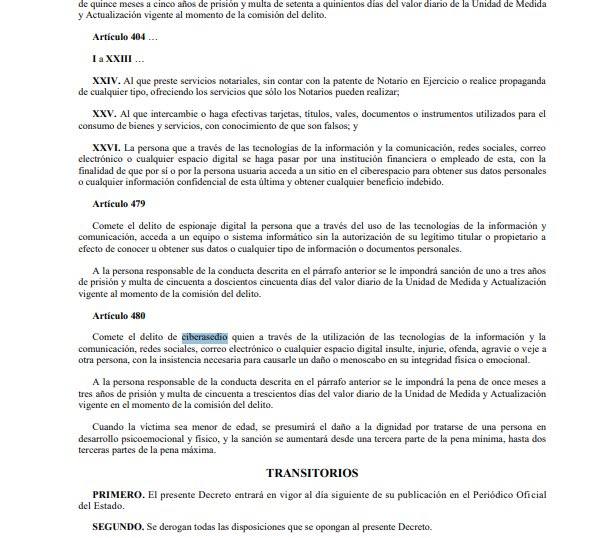 En Puebla, la Ley de Ciberseguridad, conocida como “Ley Censura”, que castiga con penas de hasta tres años de prisión a quienes emitan insultos u ofensas en redes sociales, entró en vigor el viernes, luego de ser publicada en el Periódico Oficial del Estado.