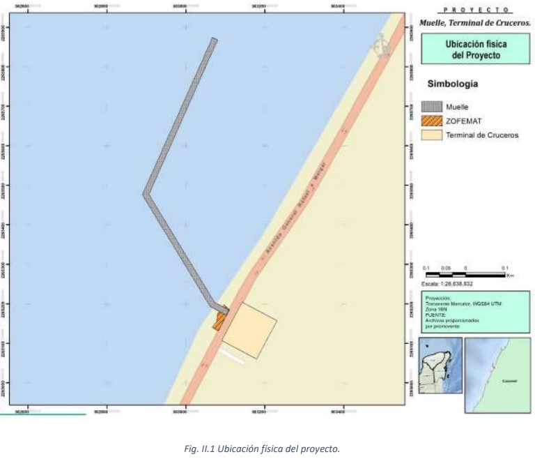 No ocurrió tal extremo, pues la Semarnat le autorizó a construir el muelle de cruceros en una superficie de 58 mil 729.803 metros cuadrados dentro de la zona federal marítima, con una inversión aproximada de 335 millones 71 mil 74.27 pesos, así como para abrir un camino de acceso en 1.1 hectáreas de selva y la terminal en tierra.