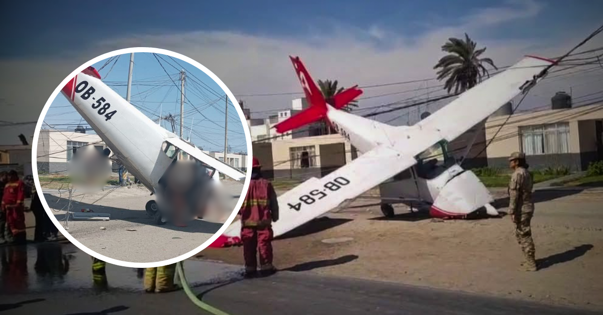 La aeronave impactó cables de luz durante un aterrizaje forzoso en Pisco, evitando mayores tragedias; el piloto y copiloto fueron hospitalizados tras el incidente