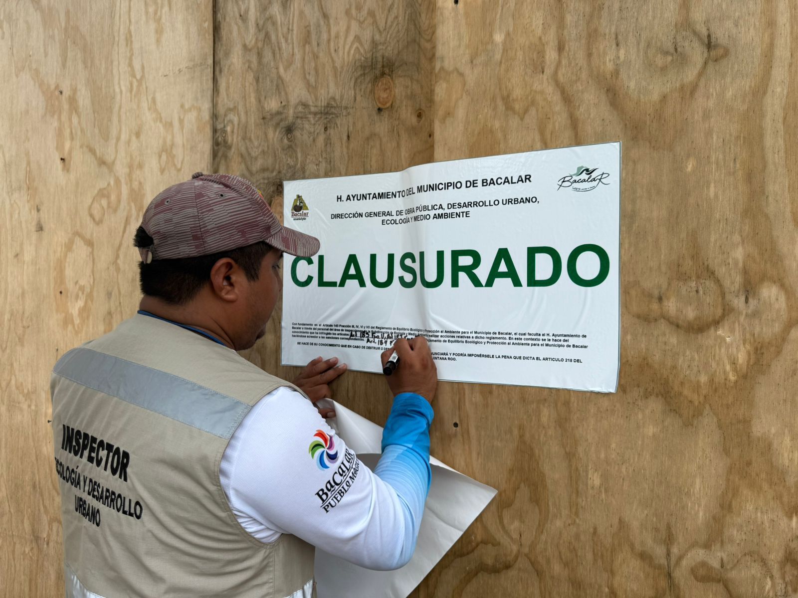 BACALAR, 29 de agosto. El ayuntamiento de Bacalar, atendió la denuncia ciudadana de una construcción irregular a orillas de la laguna y clausuró la obra.