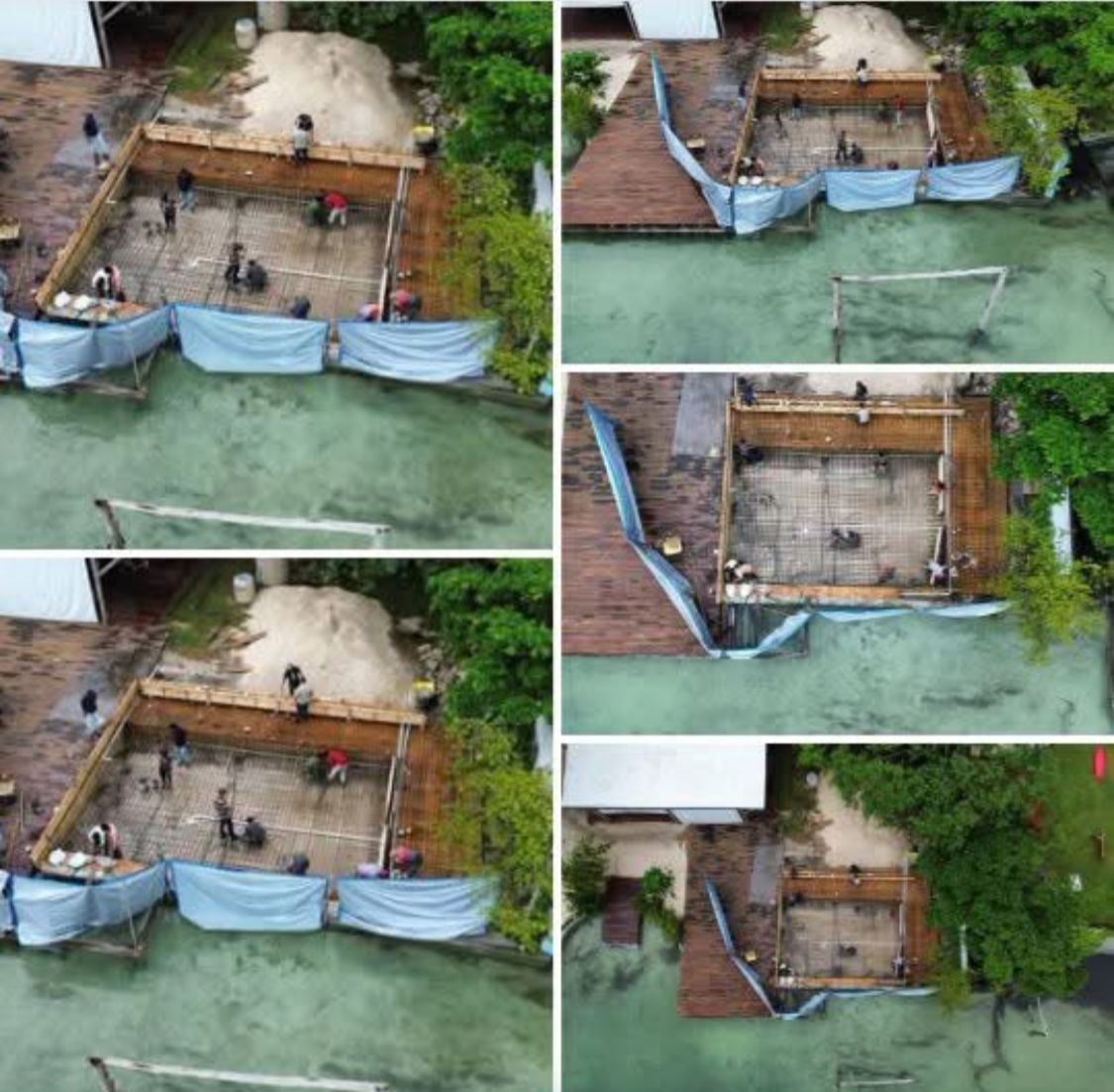 De acuerdo a lo observado, se estaba construyendo una base de concreto a orillas de la laguna, al parecer para colocar una piscina.