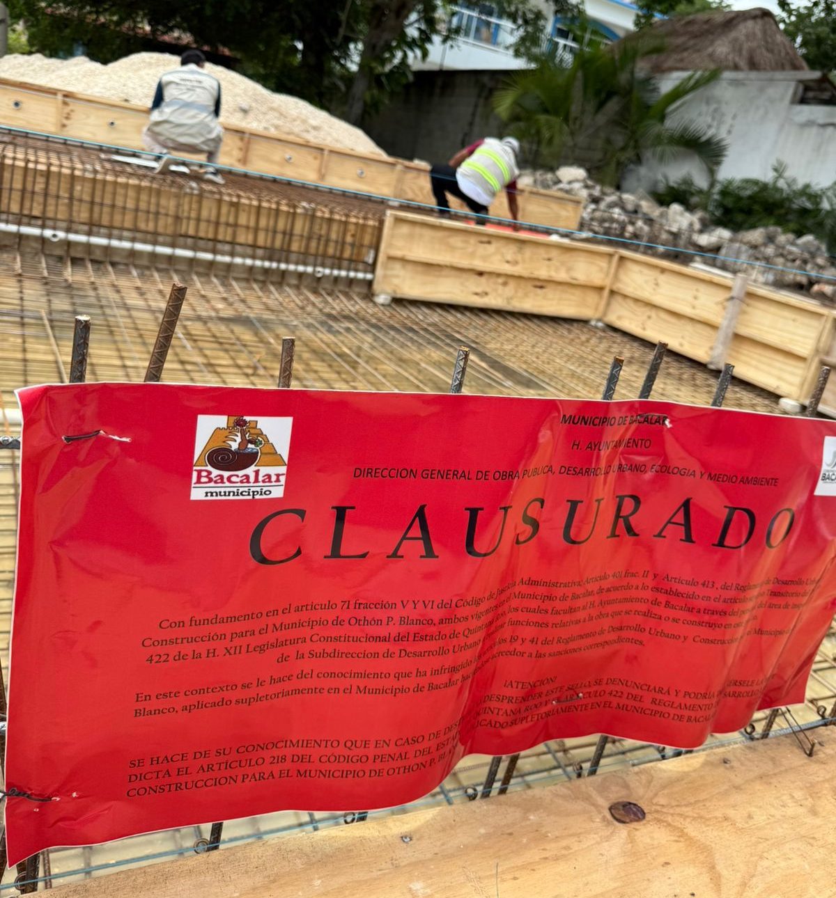 Ayuntamiento de Bacalar Clausura Obra Irregular a Orilla de la Laguna