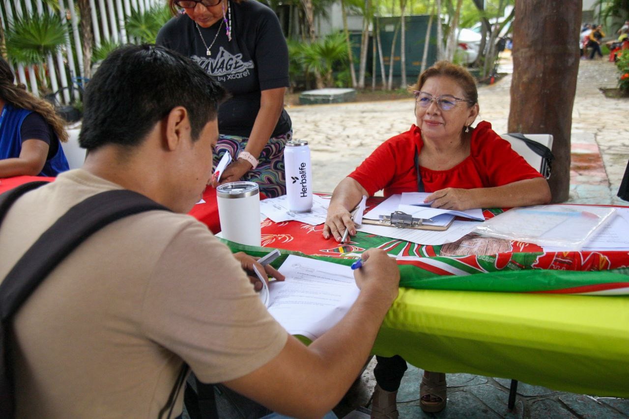 Playa del Carmen, a 23 de septiembre de 2025.— La Secretaría de Desarrollo Económico y Atracción de Inversiones de Playa del Carmen, a través de la Dirección del Trabajo y Promoción del Empleo, organizó la Octava Feria Municipal del Empleo y Servicios Laborales para la Prosperidad, en la Palapa del DIF Centro.