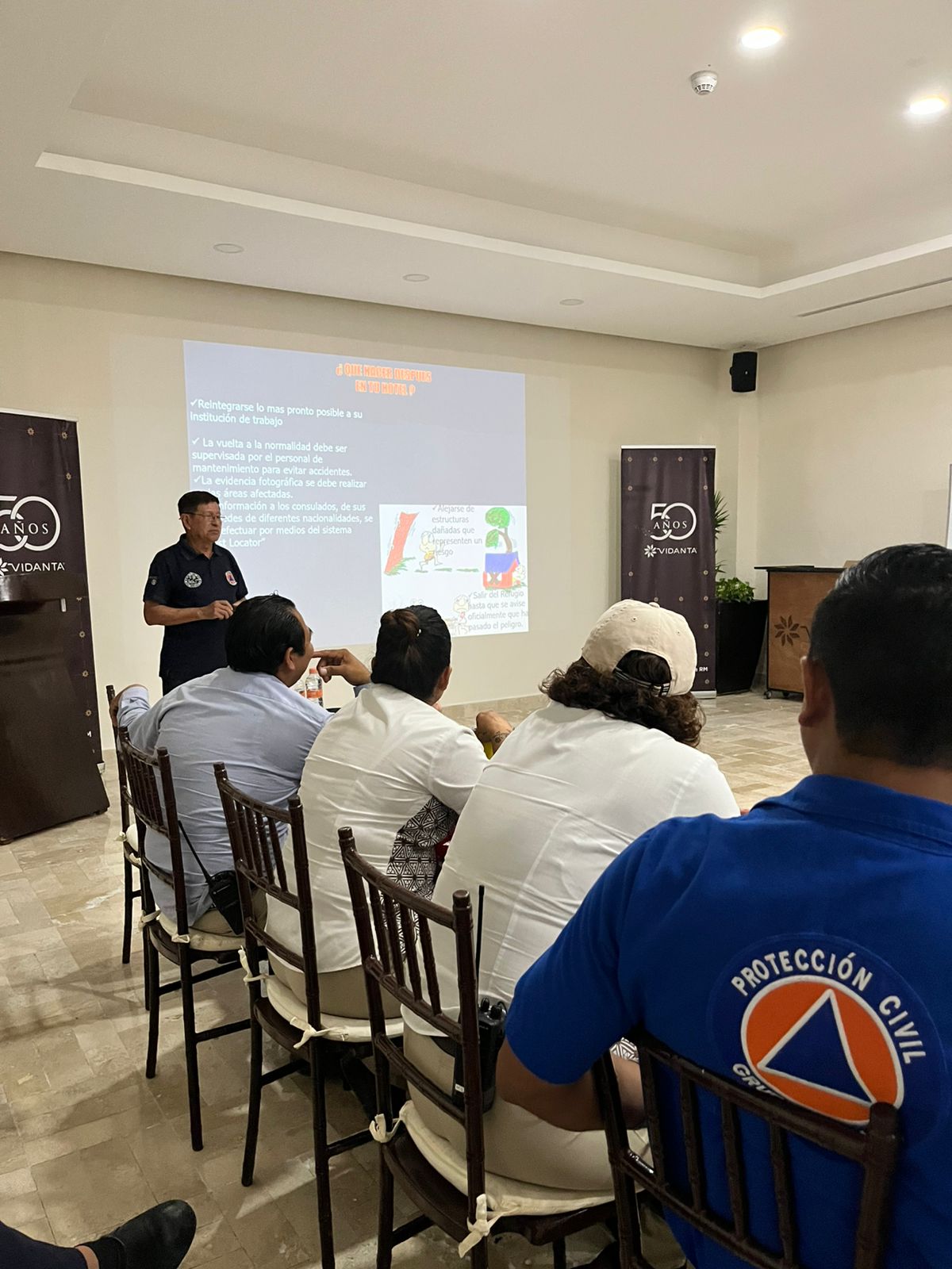 Como parte de esta estrategia integral de preparación, el secretario de Protección Civil de Playa del Carmen, Darwin Covarrubias, señaló que se han impartido pláticas informativas en 20 hoteles en coordinación con la Asociación de Hoteles de la Riviera Maya, así como a  empresarios afiliados a la COPARMEX, enfocadas en fortalecer los protocolos de actuación ante fenómenos hidrometeorológicos.