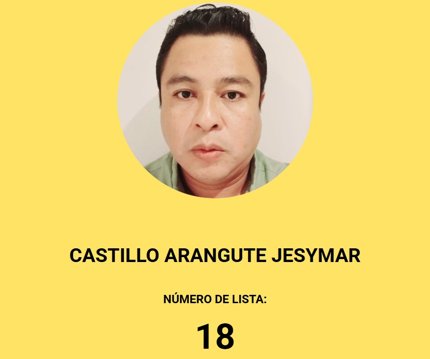 Se trata de Jesymar Castillo Arangute, un exfuncionario del gobierno municipal del PVEM en Puerto Morelos que había alcanzado la votación para ser juez federal especializado en materia laboral en el estado, pues la revisión encontró que tenía promedio de 8.4 en sus estudios de licenciatura y de 7.7 en sus estudios de especialidad, pero a pesar de no cumplir el requisito constitucional fue registrado como candidato por el Poder Legislativo federal.