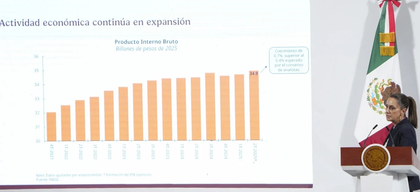 Para Janneth Quiroz, directora de Análisis Económico, Cambiario y Bursátil de Grupo Financiero Monex, la expansión económica anual de 0.9% en el primer semestre de 2025 se ubica por debajo del promedio histórico cercano al 2%, resulta positiva considerando la coyuntura actual.