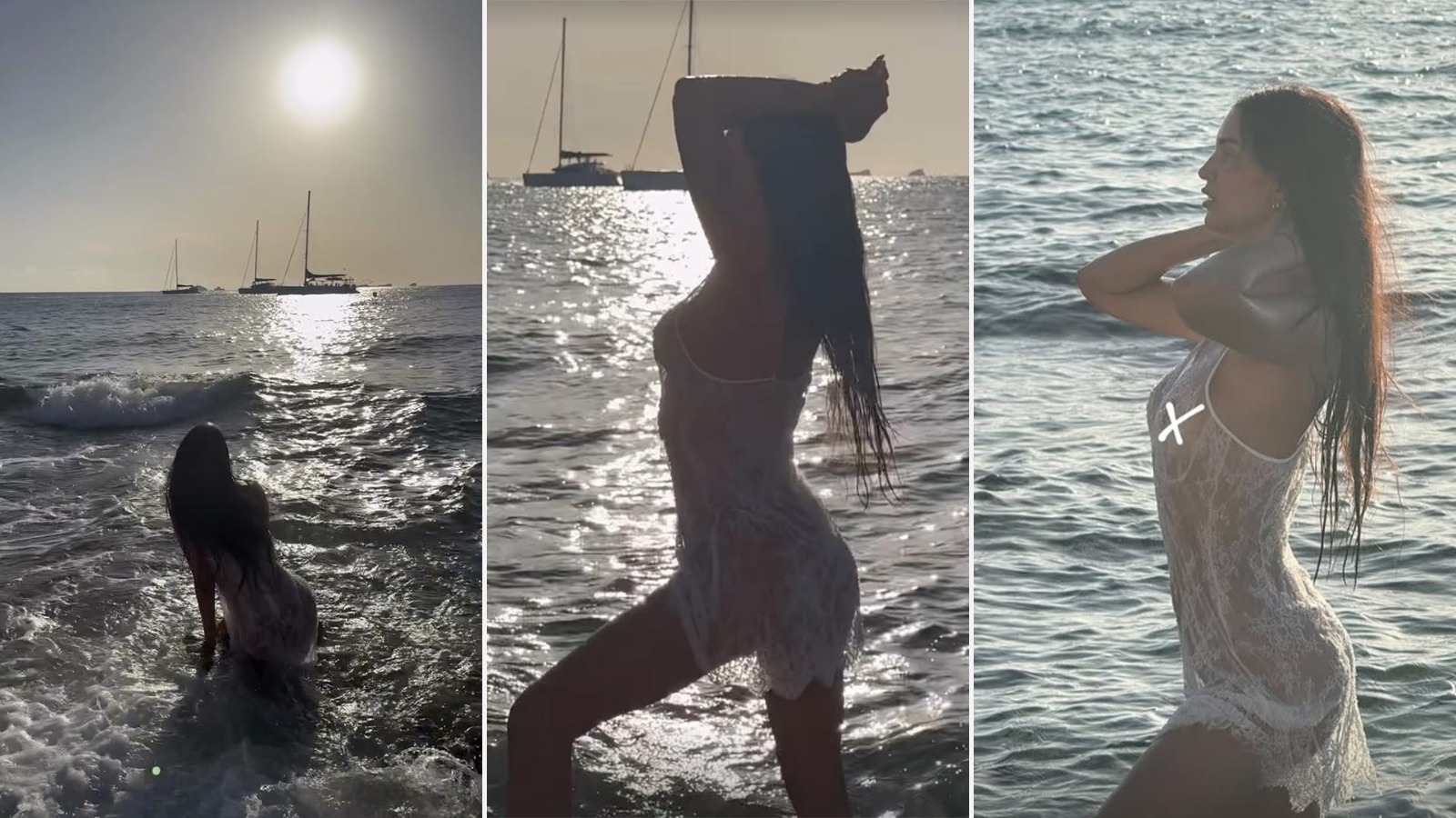 Varias tomas la retrataron sumergida en el mar con un vestido blanco transparente, que dejó ver su silueta entre luces y sombras bajo el agua. En otras imágenes, Zaira optó por una bikini mínima y se arrojó un chorro de agua con una manguera sobre la parte trasera de su cuerpo, exhibiendo la confianza característica de sus producciones.