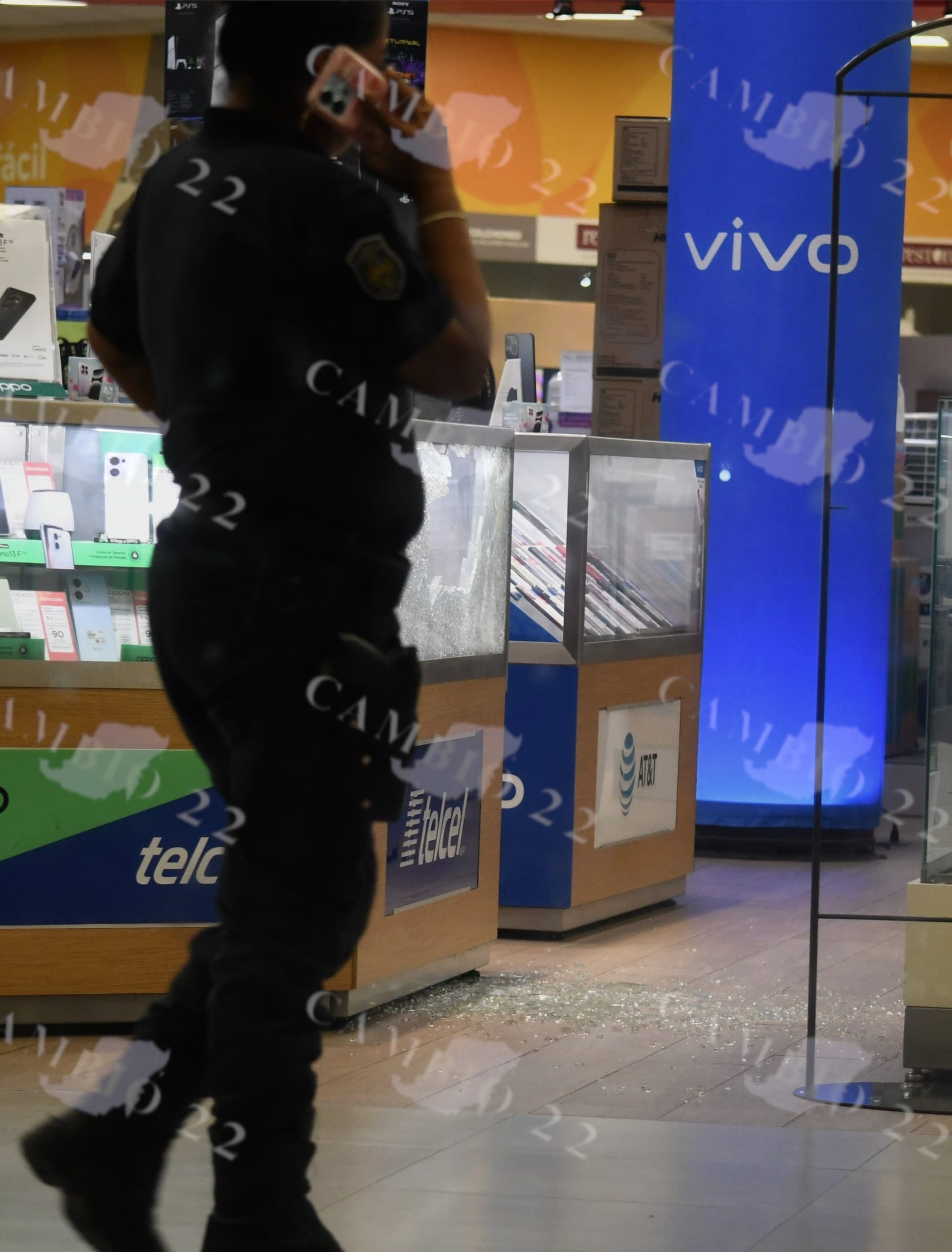 La irrupción provocó una ola de pánico, dejó severos daños materiales y evidenció, una vez más, la vulnerabilidad de los establecimientos comerciales frente al crimen organizado. Los hechos ocurrieron la noche del martes, cuando los agresores irrumpieron en el área de telefonía celular y, sin mediar palabra, abrieron fuego contra los cristales de seguridad para acceder a los dispositivos. Testigos relataron que los sujetos actuaron con rapidez y llevaban mochilas donde presumiblemente guardaron varios equipos antes de huir del lugar.