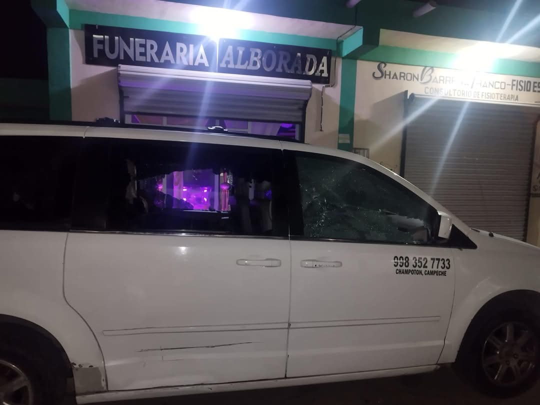 SAN FRANCISCO DE CAMPECHE, CAMPECHE, 13 de marzo.- Durante la madrugada de este jueves fue baleada camioneta de empresa de servicios funerarios de la ciudad de Champotón, del municipio de Champotón del Estado de Campeche, sin que haya personas lesionadas o aseguradas.