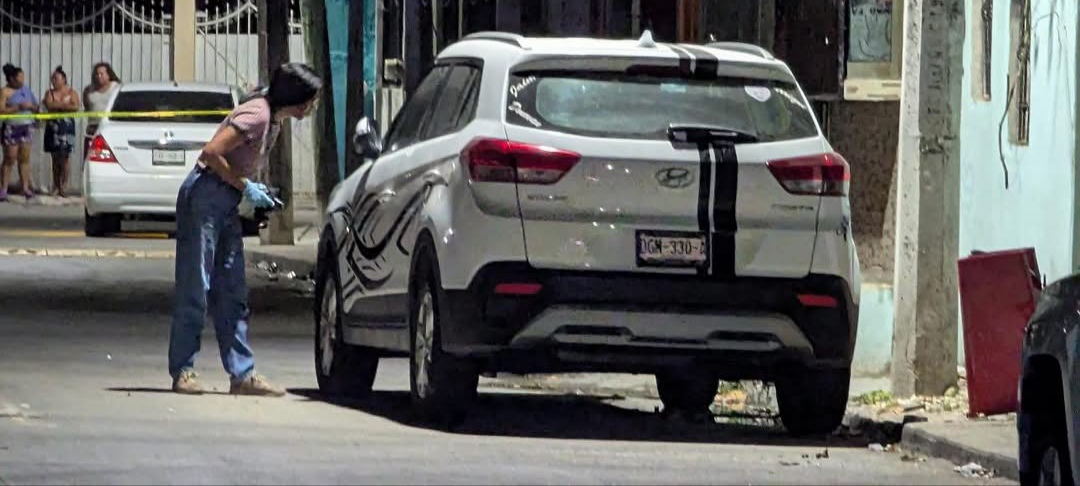 En la puerta de un domicilio estaba aparcada la camioneta Hyundai, Creta de color blanco con placas de circulación DGM-330-A del Estado de Campeche. Testigos refirieron que escucharon el paso de una motocicleta y después las detonaciones de arma de fuego.