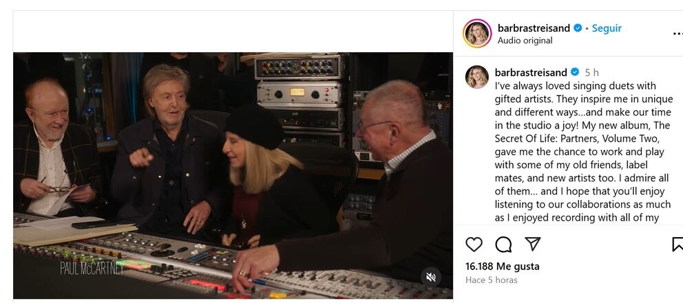 En esa misma publicación, aparecen durante breves instantes artistas muy importantes como Paul McCartney, a quien se le mira en el estudio junto a Barbra.
