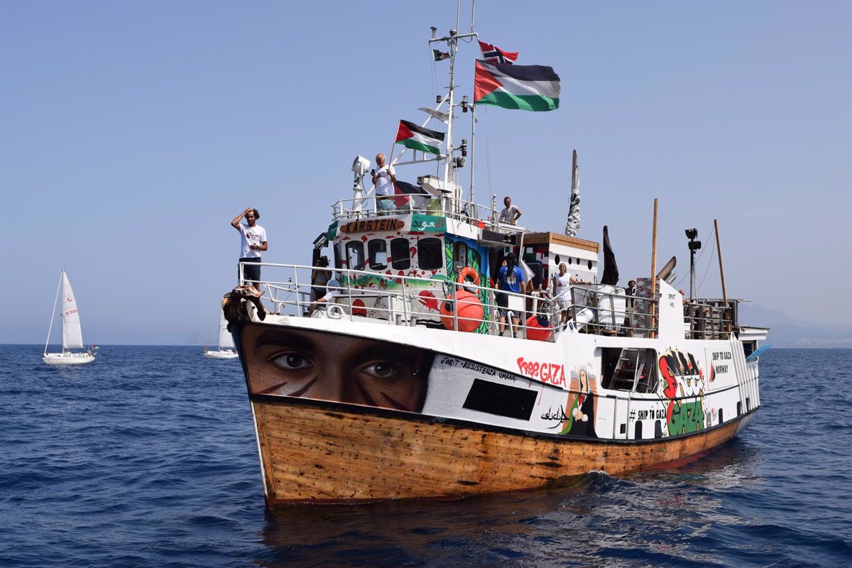 La embarcación, con activistas de 21 países, sufrió un incendio tras el ataque, pero continuó su travesía