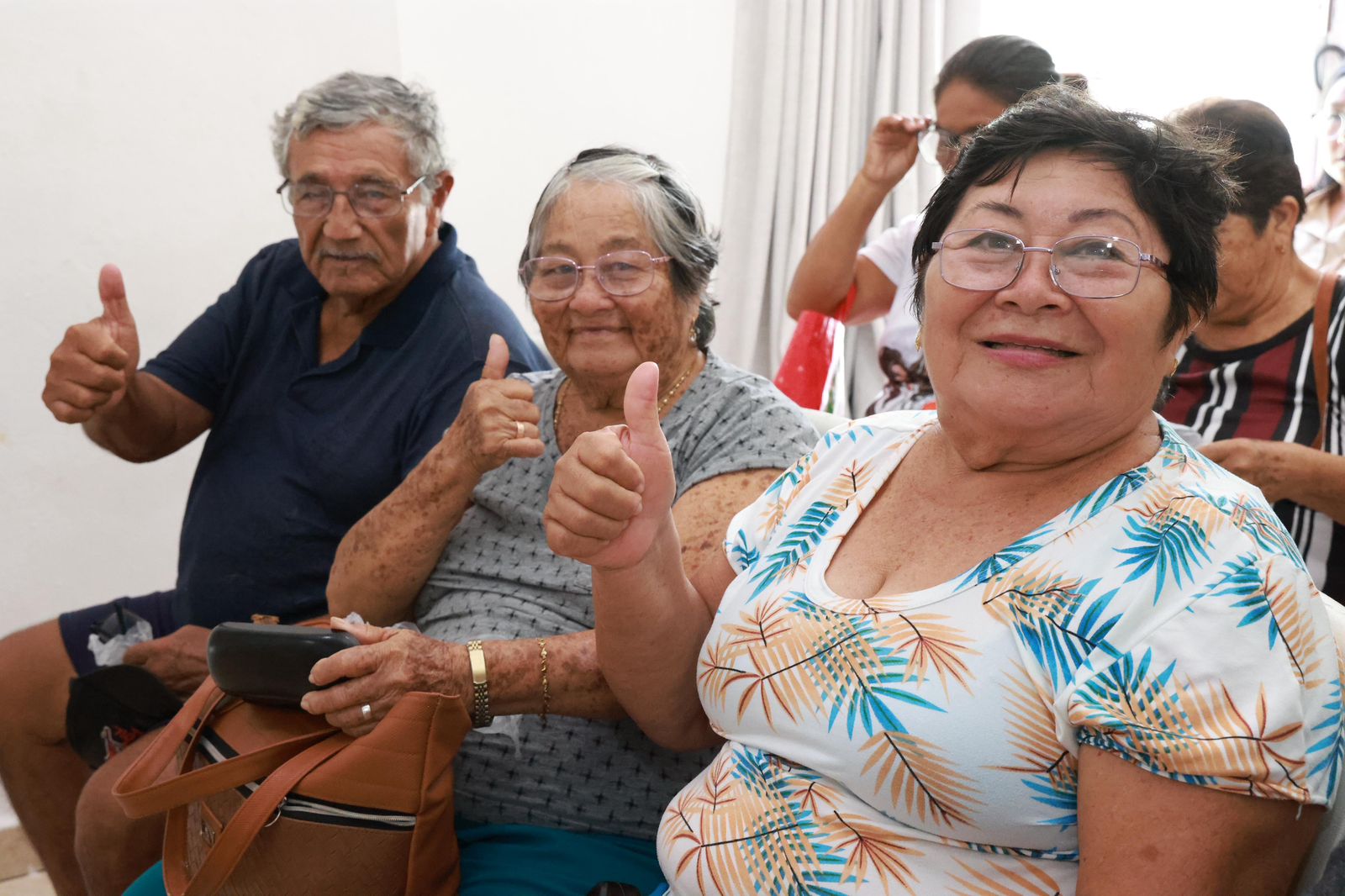 La Presidenta Municipal, Atenea Gómez Ricalde, acompañó a la Directora General de la Administración del Patrimonio de la Beneficencia Pública del Estado, Claudia Gómez Verduzco, a la entrega de los apoyos, que se llevó a cabo en la Casa del Adulto Mayor.