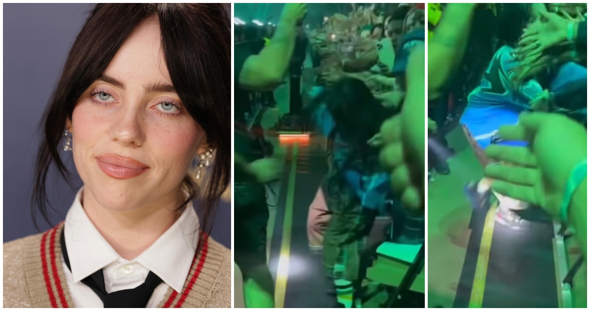 De acuerdo con videos difundidos en redes sociales, Eilish bajó del escenario para interactuar con los fans cuando un asistente la jaló hacia la multitud, provocando que tropezara y cayera sobre la barricada que separa el escenario del público.
