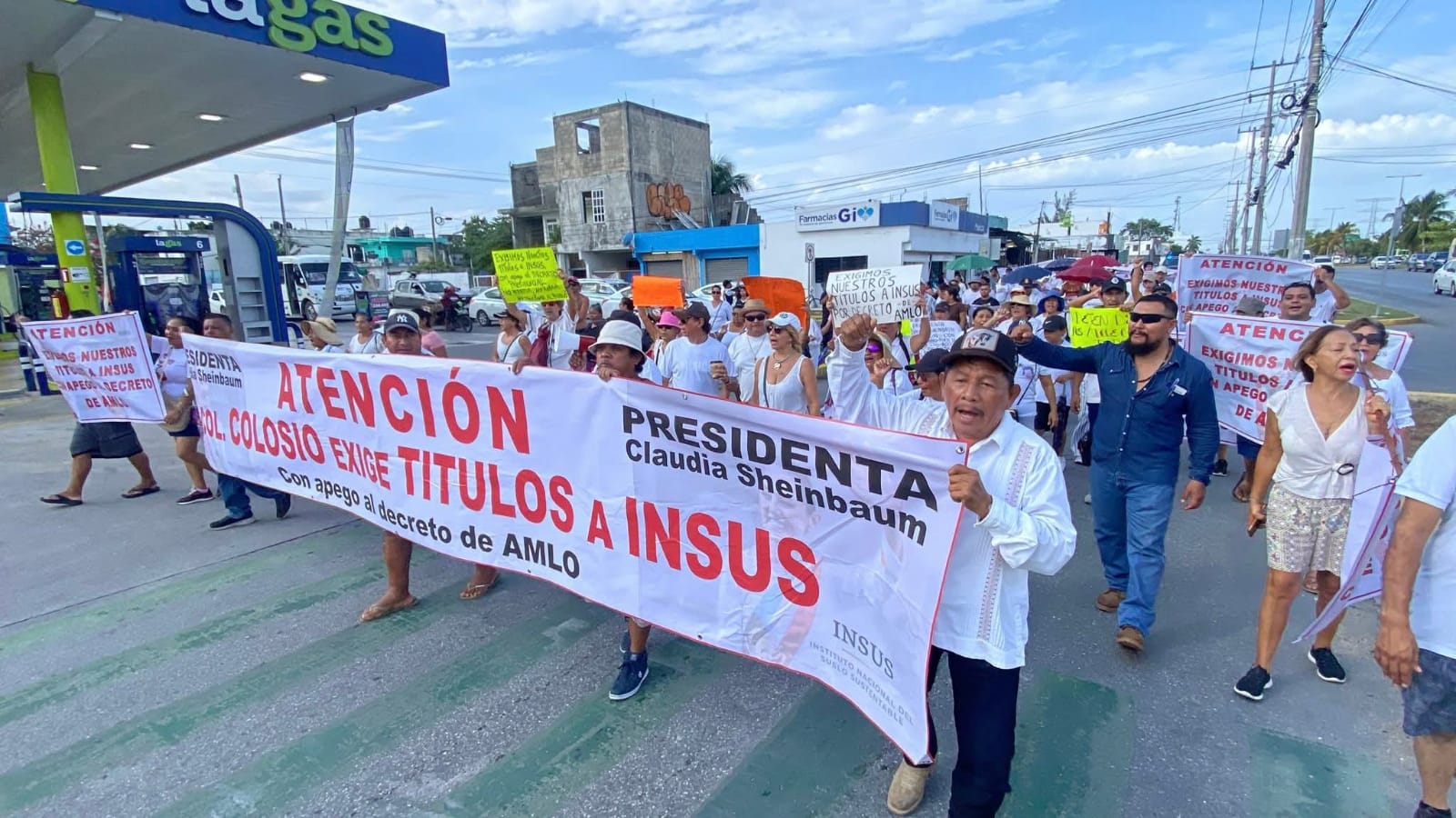Alrededor de las 9:00 horas de la mañanas, un nutrido grupo de colonos de la primer colonia fundada hace treinta y un años, la Luis Donaldo Colosio, se manifestaron de manera pacifica sobre el Boulevard Playa del Carmen a la altura del cruce de la avenida 28 de julio y la calle 106 norte, bloqueando parcialmente el carril de sur a norte debido a los cobros excesivos por la titulación de las propiedades realizado por el Instituto Nacional de Suelo Sustentable (INSUS).