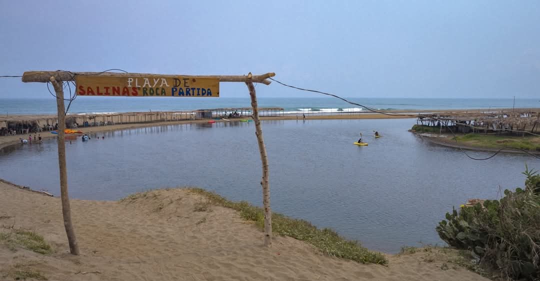 La playa de Salinas Roca Partida es uno de los principales atractivos, ideal para pasar un día en familia, disfrutar de la arena, el agua dulce de los ríos que desembocan ahí mismo, y el mar que se abre al horizonte.