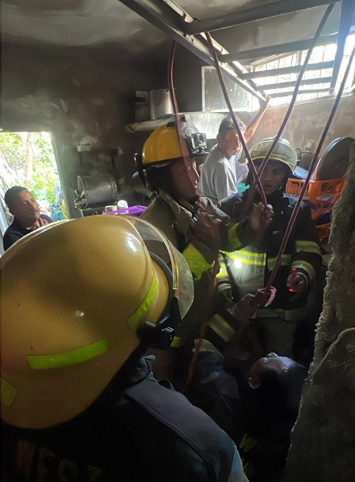 El personal del Cuerpo de Bomberos actuó rápidamente, demostrando su alto nivel de capacitación y profesionalismo al coordinar el rescate con apoyo de dos escaleras y una cuerda.