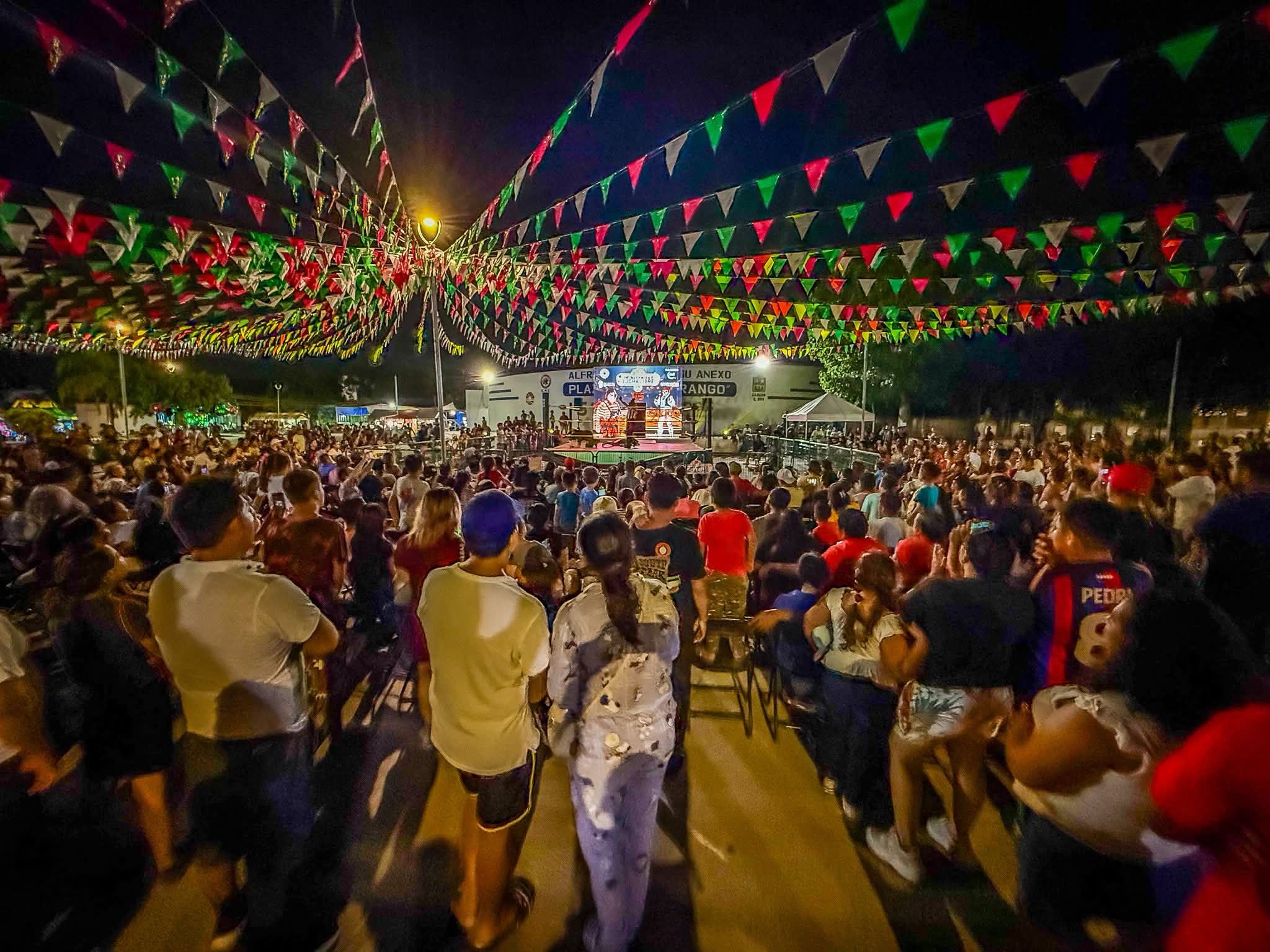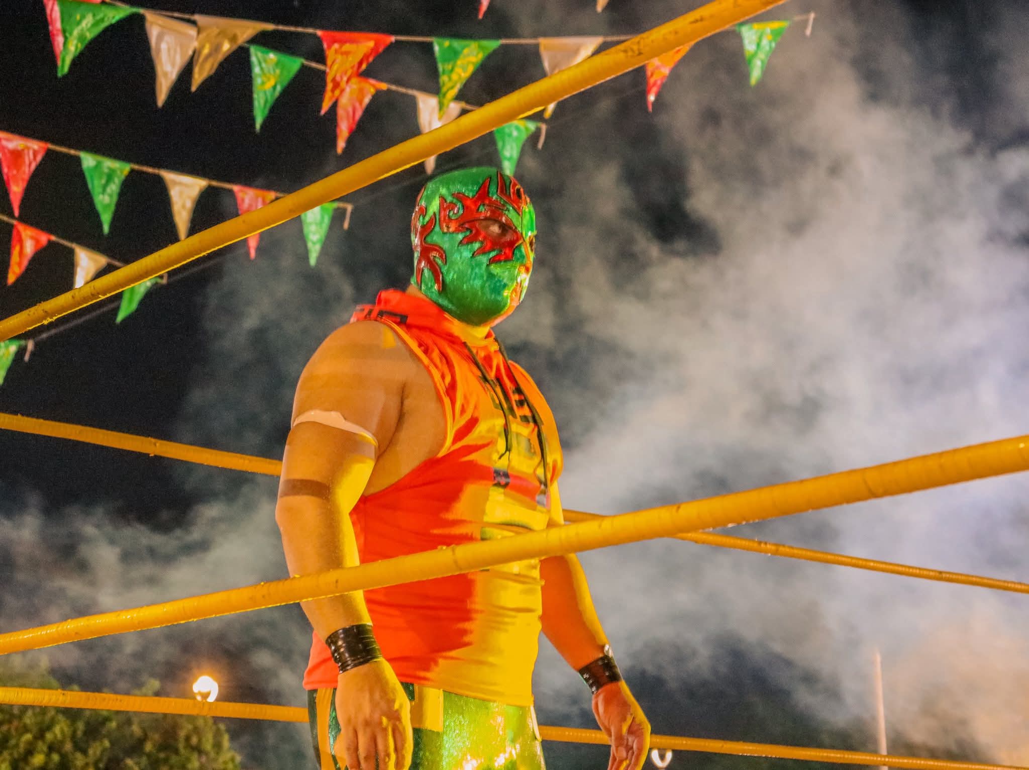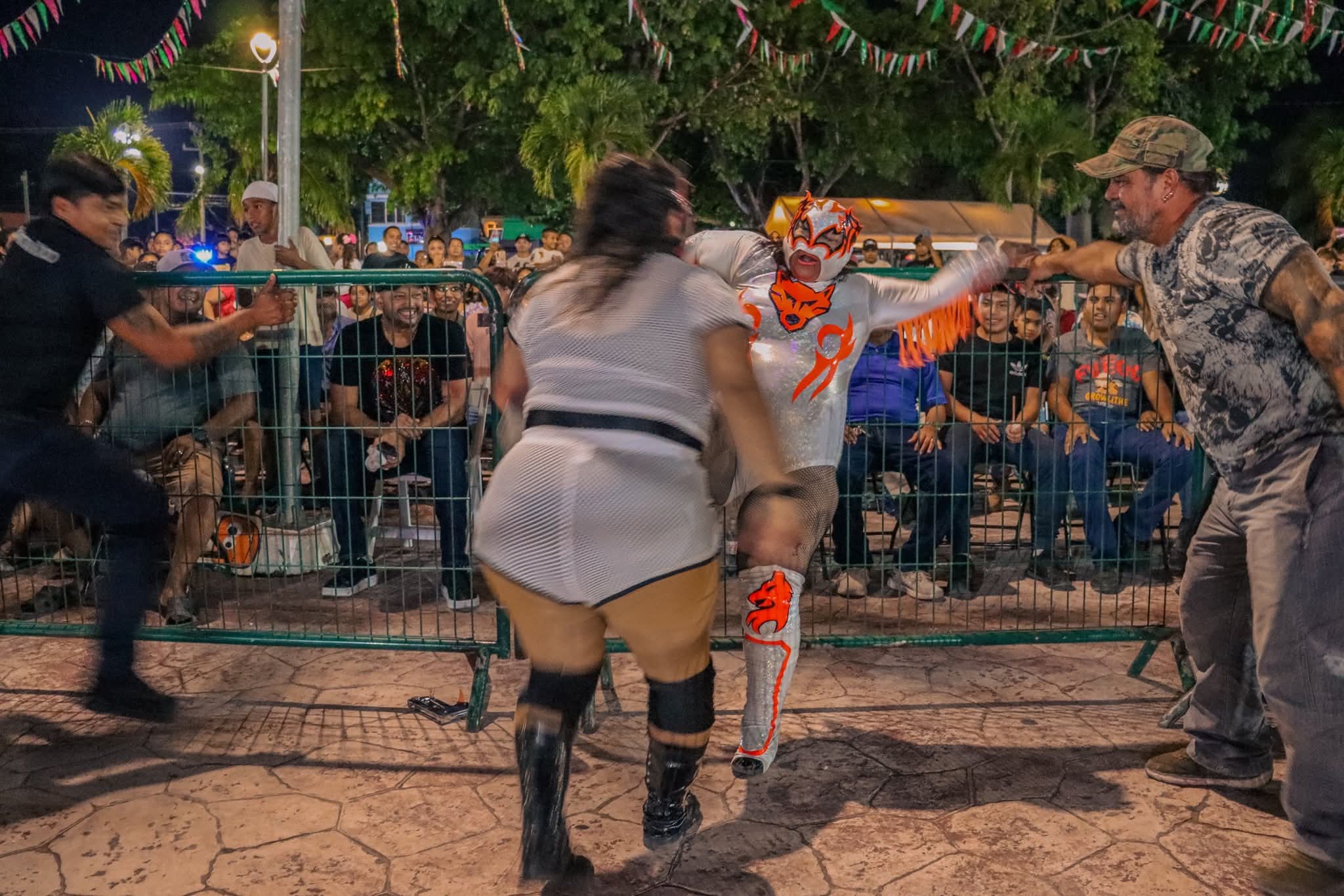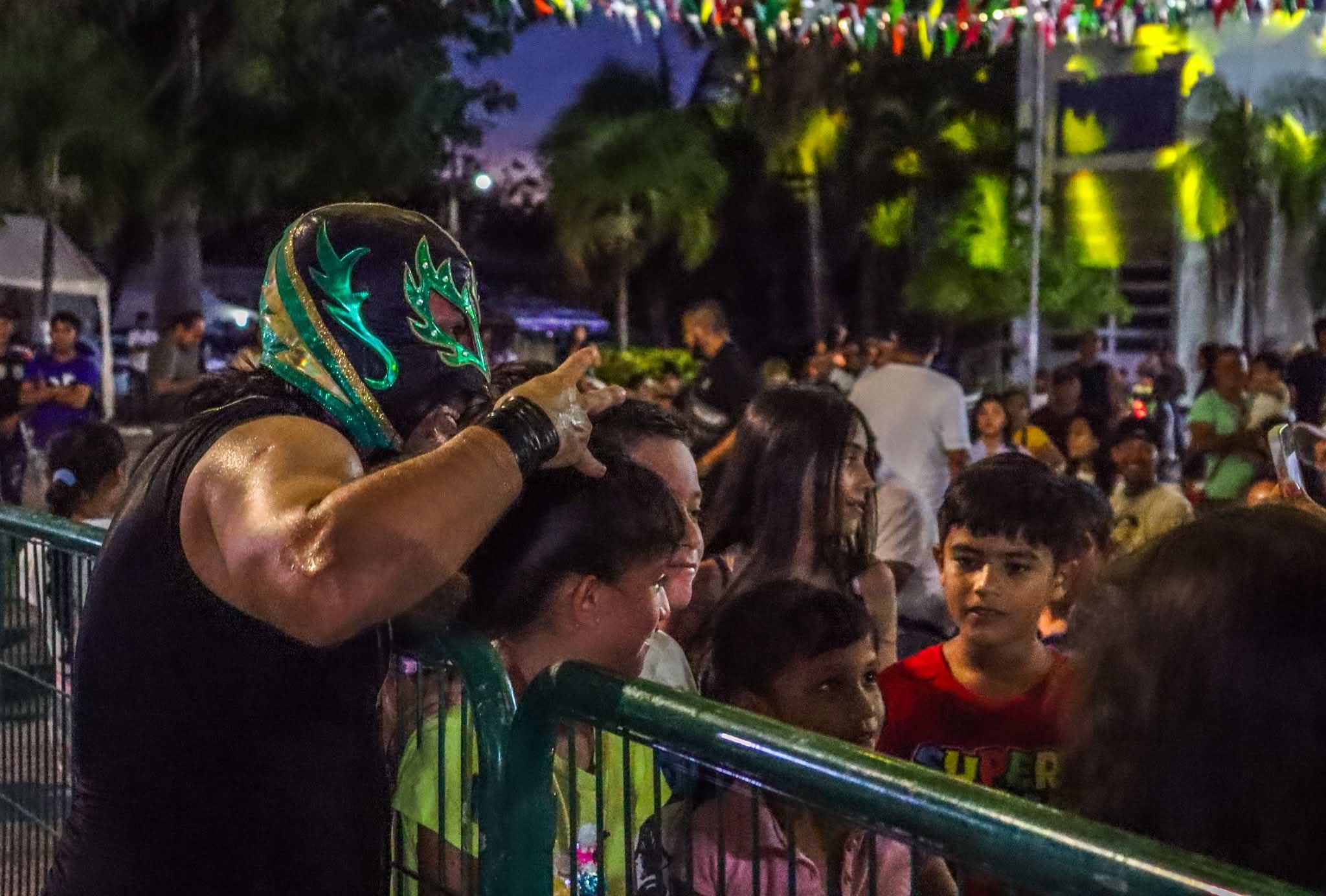CANCÚN, Q. ROO a 7 de septiembre.- El -Mes Patrio- ya se siente en la Plaza Cívica del ejido Alfredo V. Bonfil, la cual este pasado sábado, lució una escenografía llena de papelitos tricolores, para recibir a las familias bonfileñas, mismas que disfrutaron al máximo, con la quinta eliminatoria del Campeonato Municipal de Lucha Libre, el cual es organizado por el Instituto Municipal del Deporte de Benito Juárez, con el apoyo de las distintas promotoras del -Deporte Espectáculo- en Cancún, a la par de contar con el aval de la Honorable Comisión de Boxeo, Lucha Libre y Artes Marciales Mixtas de la entidad.