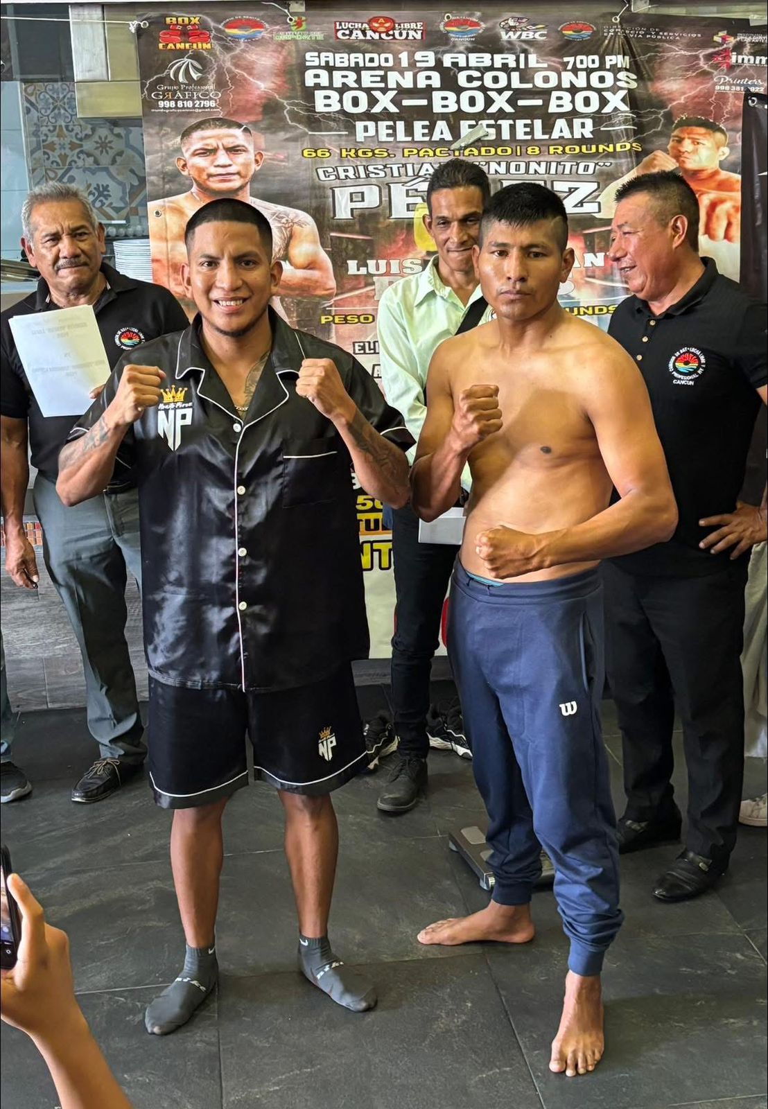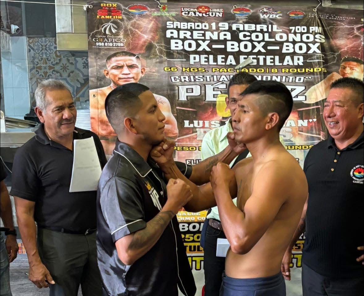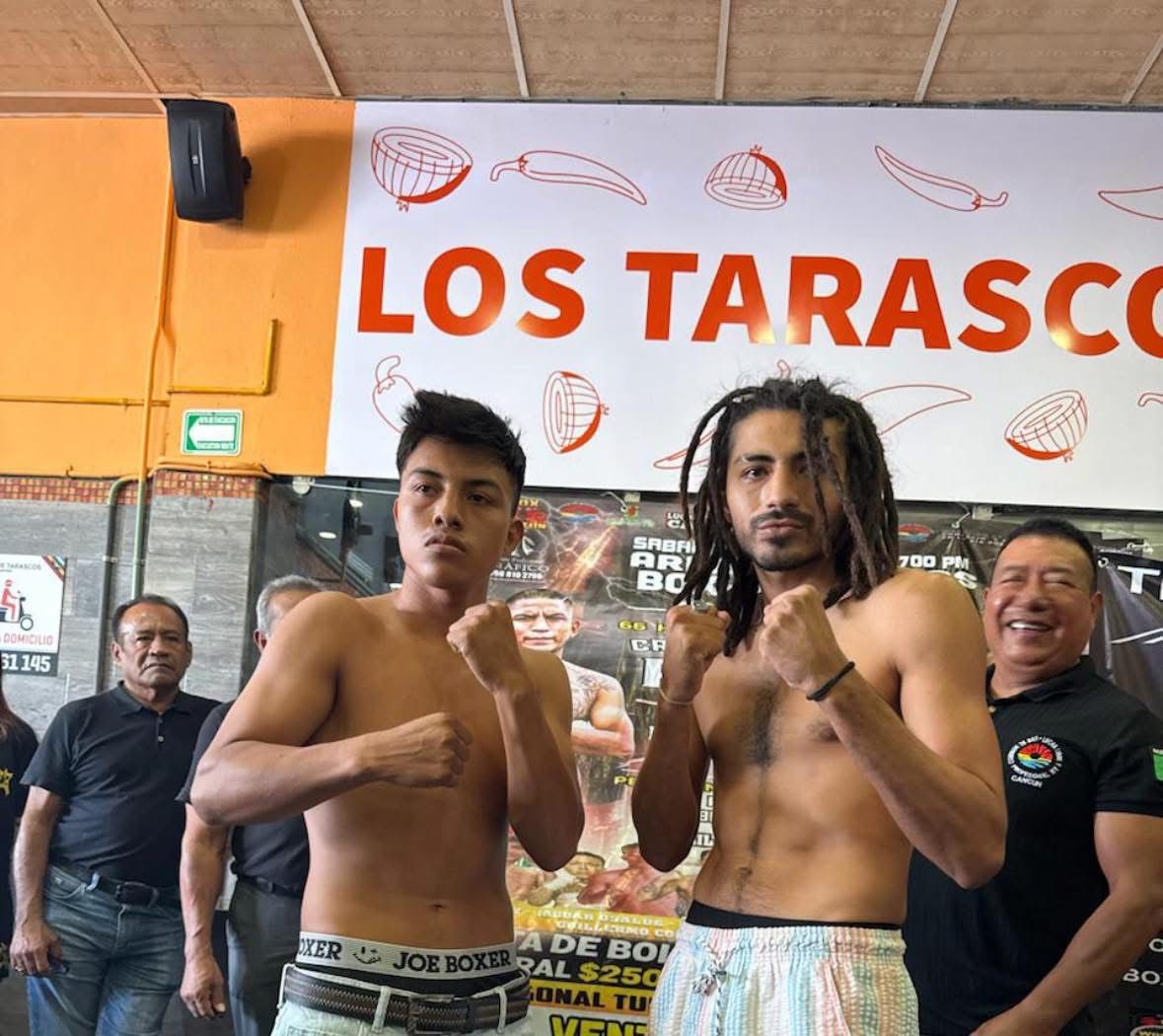CANCUN, Q. ROO a 18 de abril.- La función boxística de este sábado 19 de abril en la Arena Colonos de Cancún está confirmada: todos los peleadores cumplieron con el pesaje oficial realizado en el restaurante Los Tarascos Cancún patrocinadores de la velada. No hubo sorpresas: todos marcaron el peso pactado, y la velada está lista para arrancar.