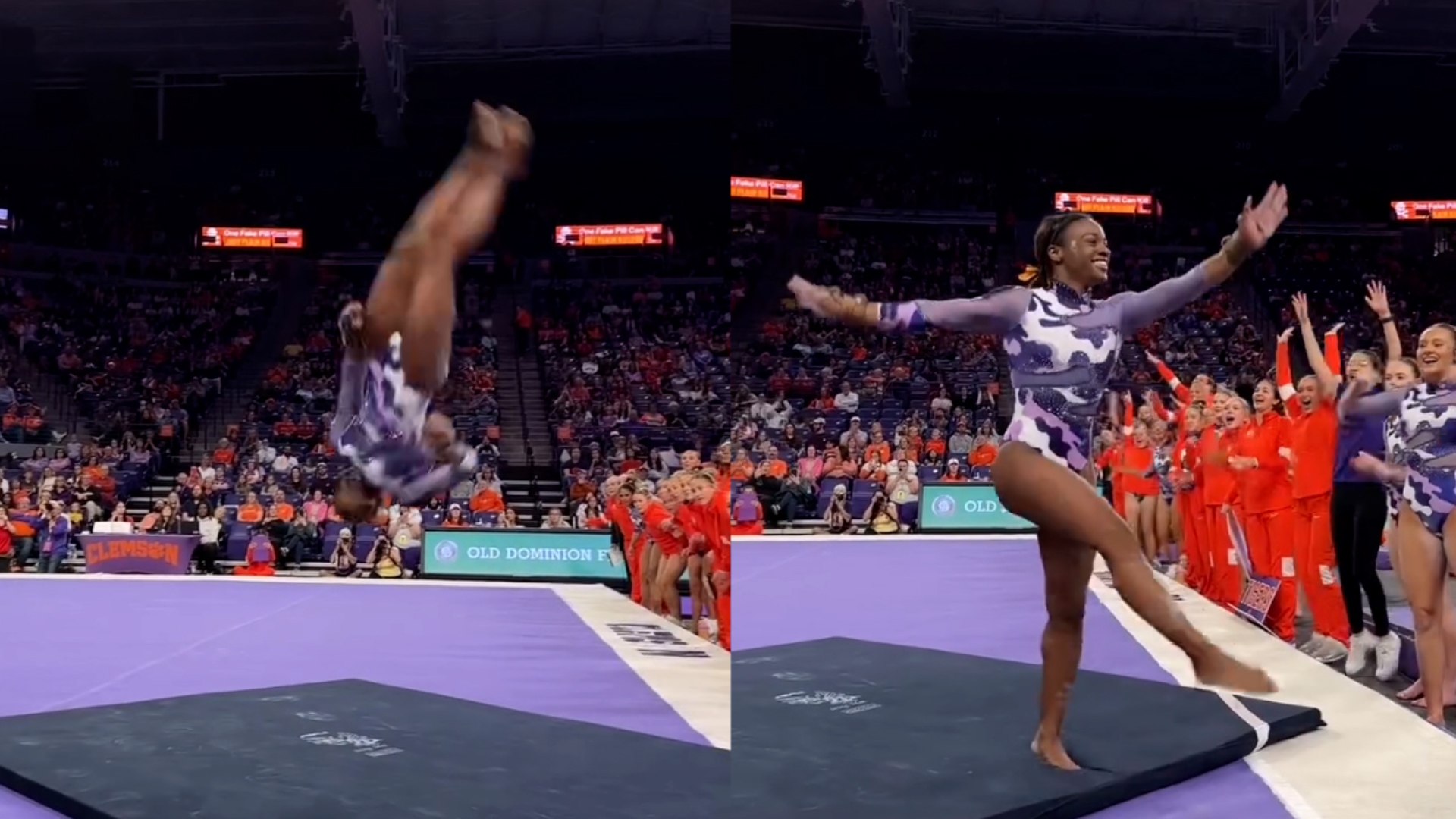 Brie Clark, gimnasta de la Universidad de Clemson, se convirtió en la primera atleta de la NCAA en ejecutar el salto ‘Biles I’, lo que le valió un estimulante mensaje de la leyenda olímpica.