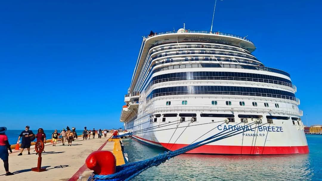 Pese a la cancelación del Brilliance of the Seas, el Carnival Breeze, procedente de Cozumel, Quintana Roo, sí llegó a Progreso, atracando en la terminal de cruceros a las 08:31 horas con 5,391 personas a bordo, entre pasajeros y tripulantes.