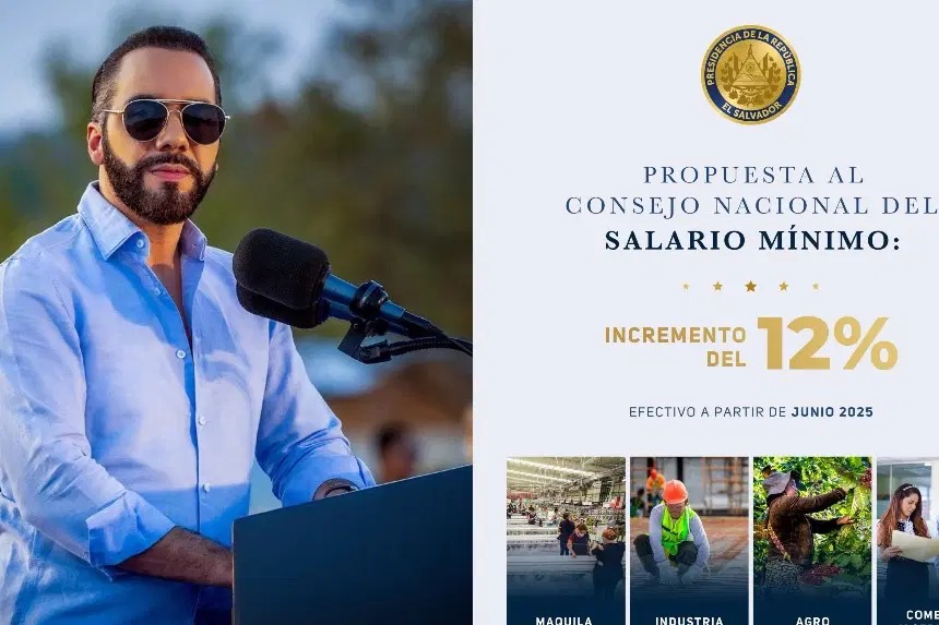 El presidente de El Salvador, Nayib Bukele, propuso este viernes (25.04.2025) elevar el salario mínimo de los trabajadores 12 % a partir de junio de este año, por lo que envió una propuesta al intersectorial Consejo Nacional del Salario Mínimo.