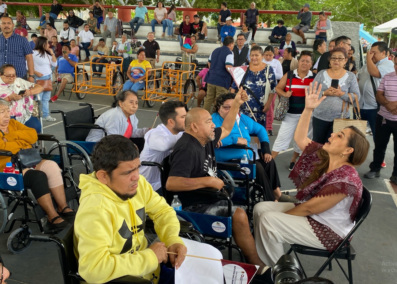 La mandataria refirió que entregaron un total de 570 apoyos entre andaderas, sillas de ruedas, bastón reforzado, tinacos que les piden muchísimo, las pinturas de cubeta, los triciclos, el cual en ocasiones les ayuda para que las personas vendan sus productos.