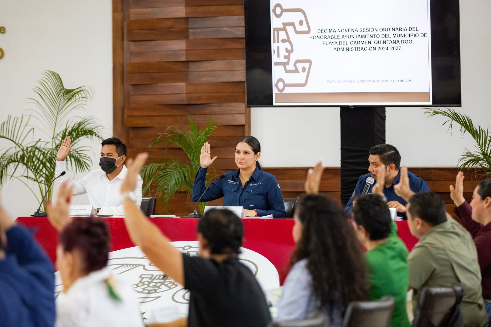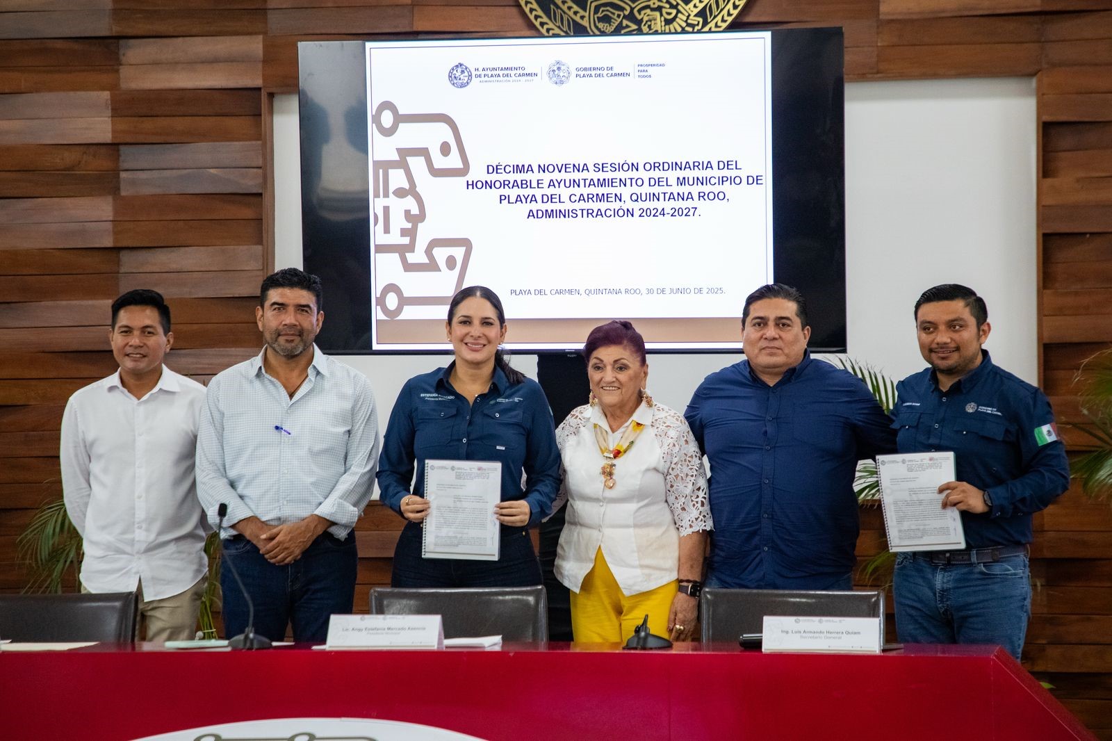 Playa del Carmen, a 30 de junio.— En el marco de la Décima Novena Sesión Ordinaria del Honorable Ayuntamiento de Playa del Carmen, administración 2024–2027, encabezada por la presidenta municipal Estefanía Mercado, el Cabildo aprobó, por unanimidad, la iniciativa de decreto para declarar la fiesta patronal dedicada a la Virgen del Carmen como Patrimonio Cultural Intangible del Estado de Quintana Roo.