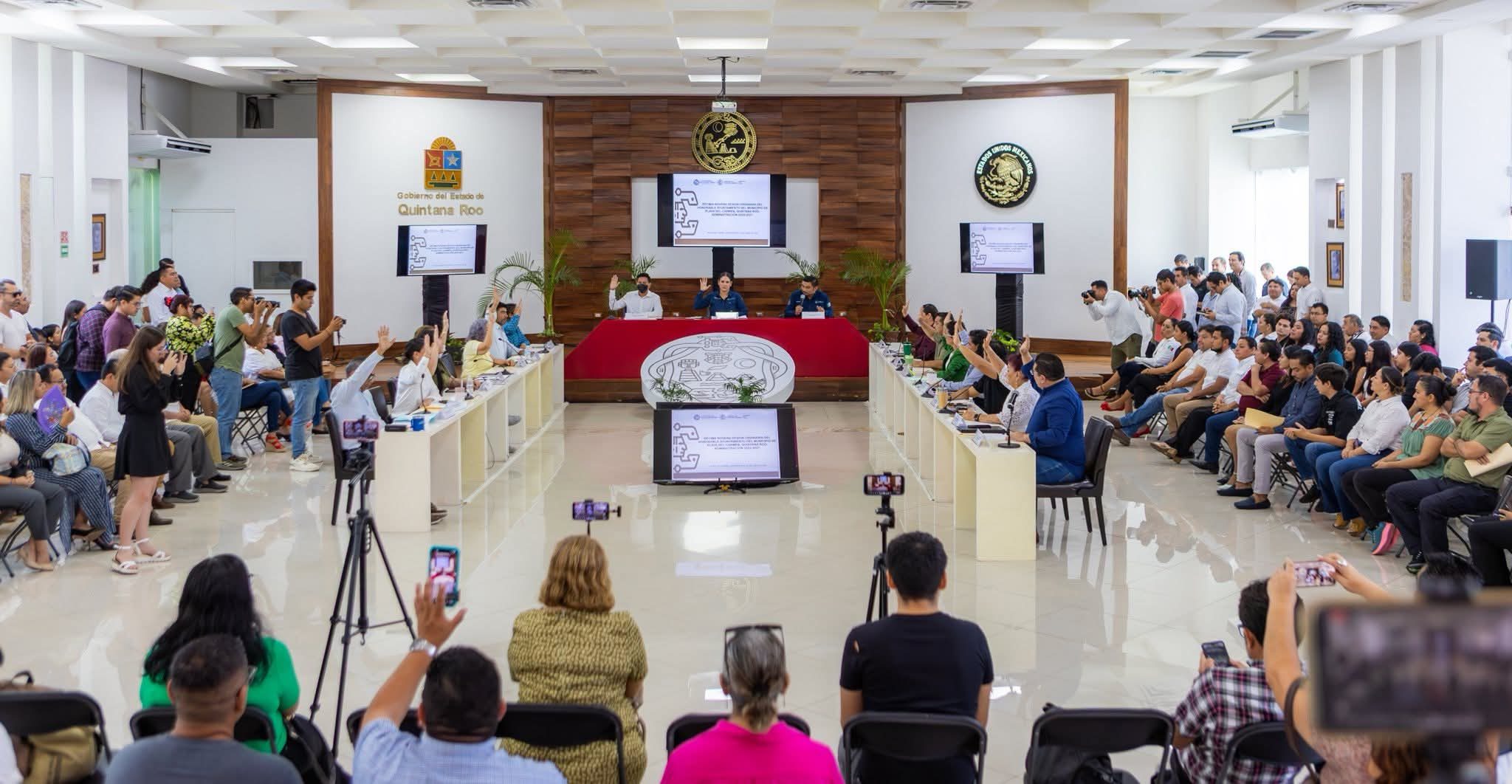 Finalmente, se aprobó autorizar la firma de un convenio de coordinación con el Instituto para el Desarrollo del Pueblo Maya y las Comunidades Indígenas de Quintana Roo, por parte de la presidenta municipal Estefanía Mercado, el tesorero Javier Regalado Hendrix, y el oficial mayor Guillermo Brahms González.