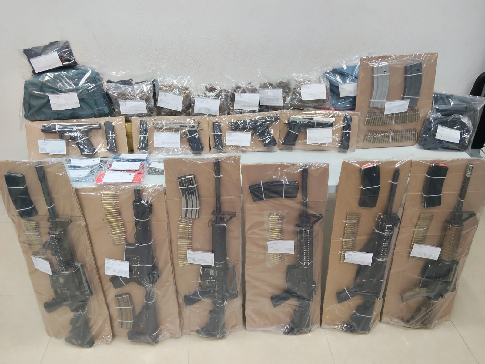 Durante la revisión, los agentes les aseguraron hierba verde y seca con las características de la marihuana, así como armas de fuego cortas y teléfonos celulares.
