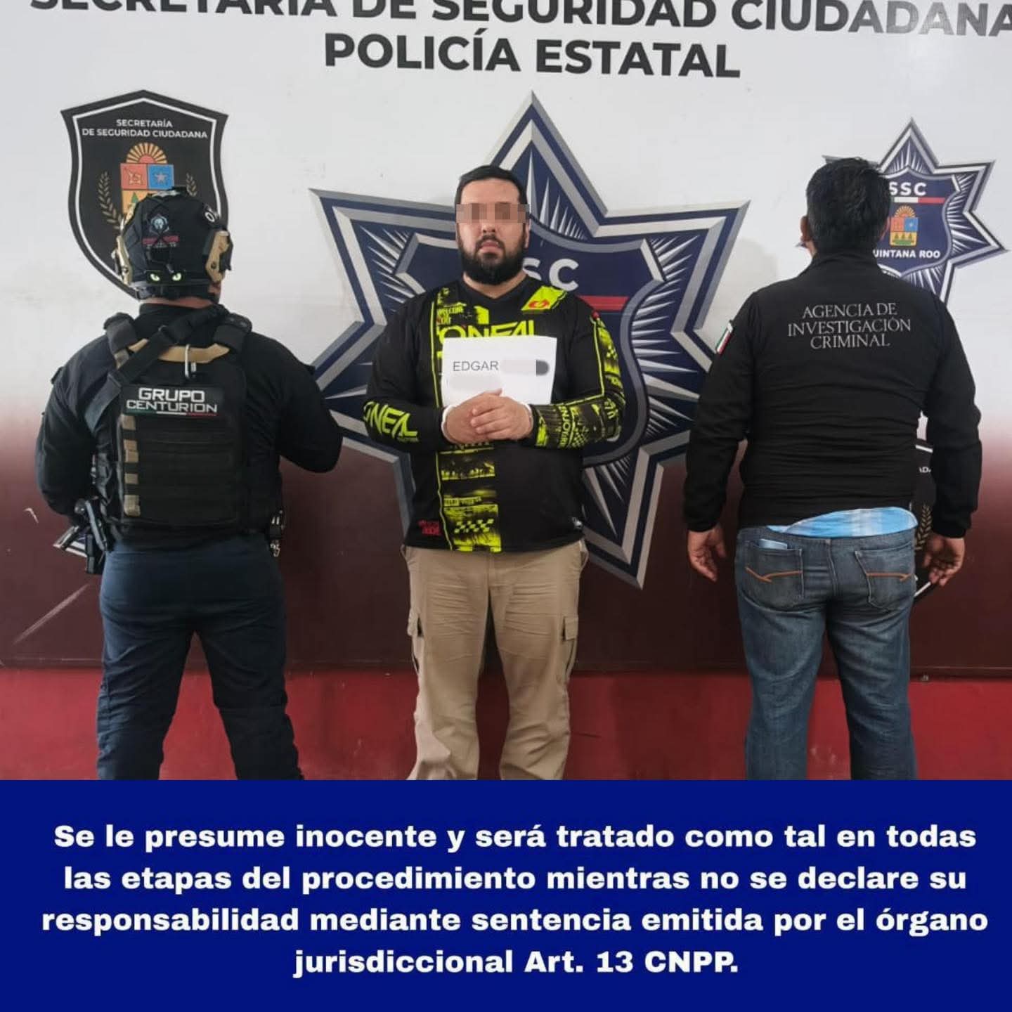 Cancún.- En una operación de colaboración interestatal, la Secretaría de Seguridad Ciudadana de Quintana Roo (SSC) informó la detención de un hombre identificado como Edgar “N”, quien era buscado por autoridades federales y del Estado de México por el delito de secuestro.