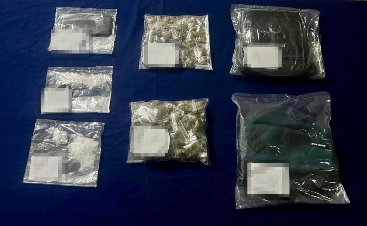 Tras la inspección, las autoridades aseguraron: una mariconera, una cangurera, 94 bolsitas de plástico transparente que contenían vegetal verde y seco similar a la marihuana, 50 bolsitas transparentes con fragmentos sólidos parecidos al cristal, un teléfono celular, y una motocicleta marca Italika, tipo AT 110, de color negro, con placas de circulación de Quintana Roo.