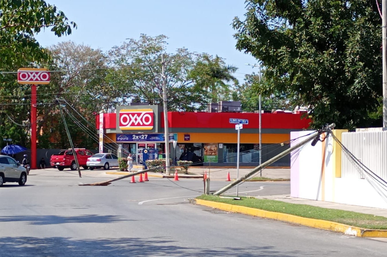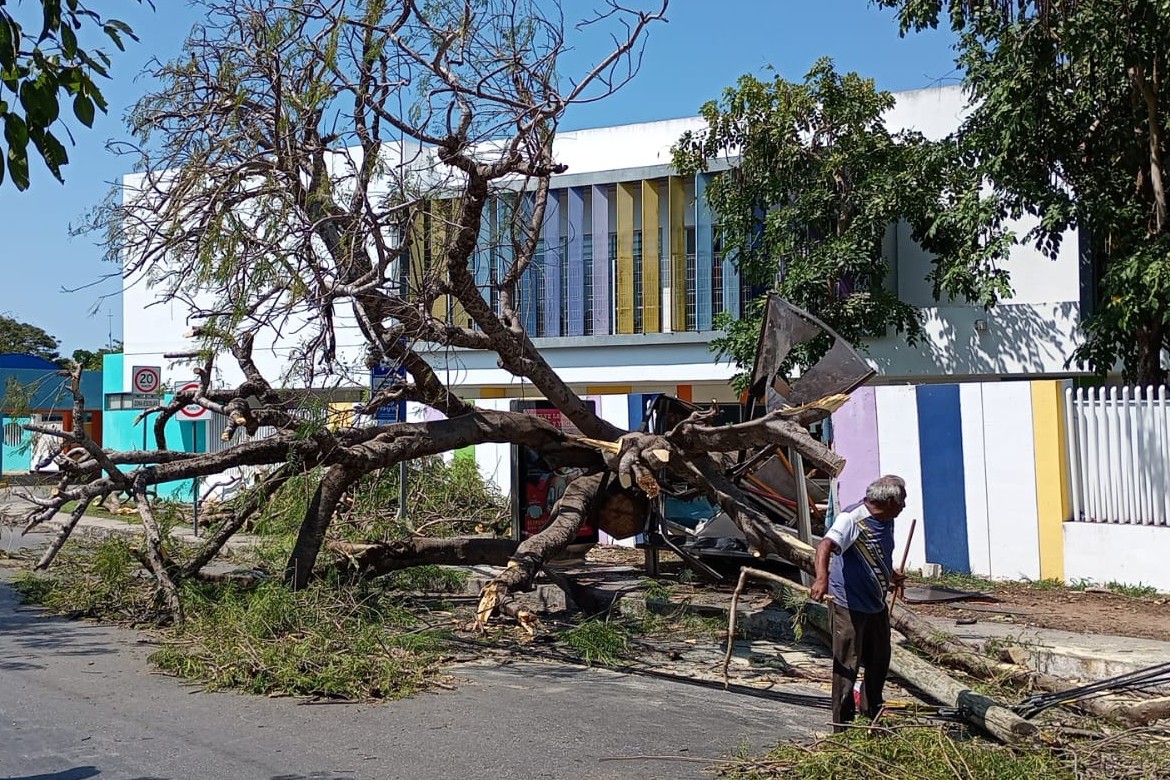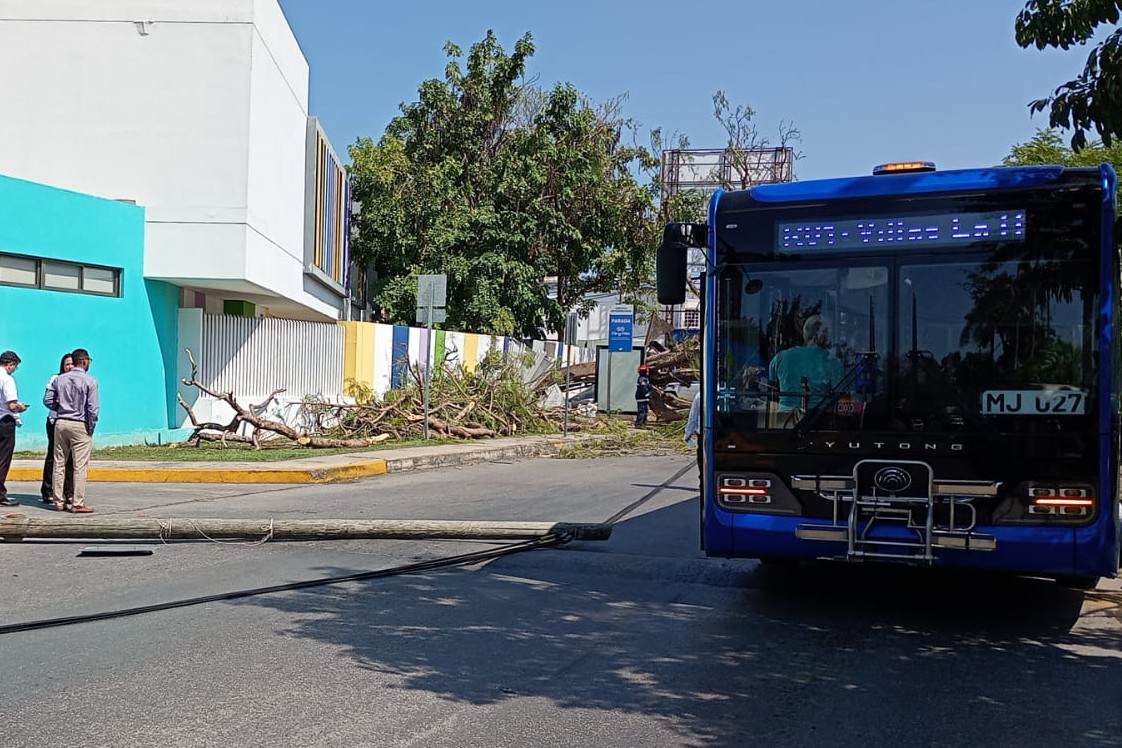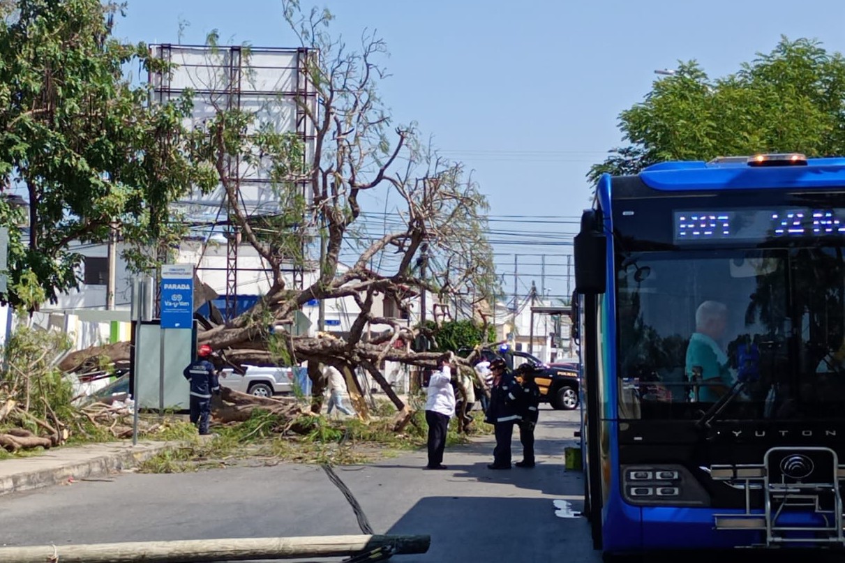 Además, uno de ellos alcanzó a dañar un vehículo del Va y Ven que pasaba en esos momentos sobre la avenida, además de que un paradero instalado en la banqueta quedó destrozado, ya que le cayó encima el flamboyán. Fue un verdadero milagro que no hubiera personas esperando camión en ese momento, así que todo quedó en daños materiales sin lesionados qué lamentar.
