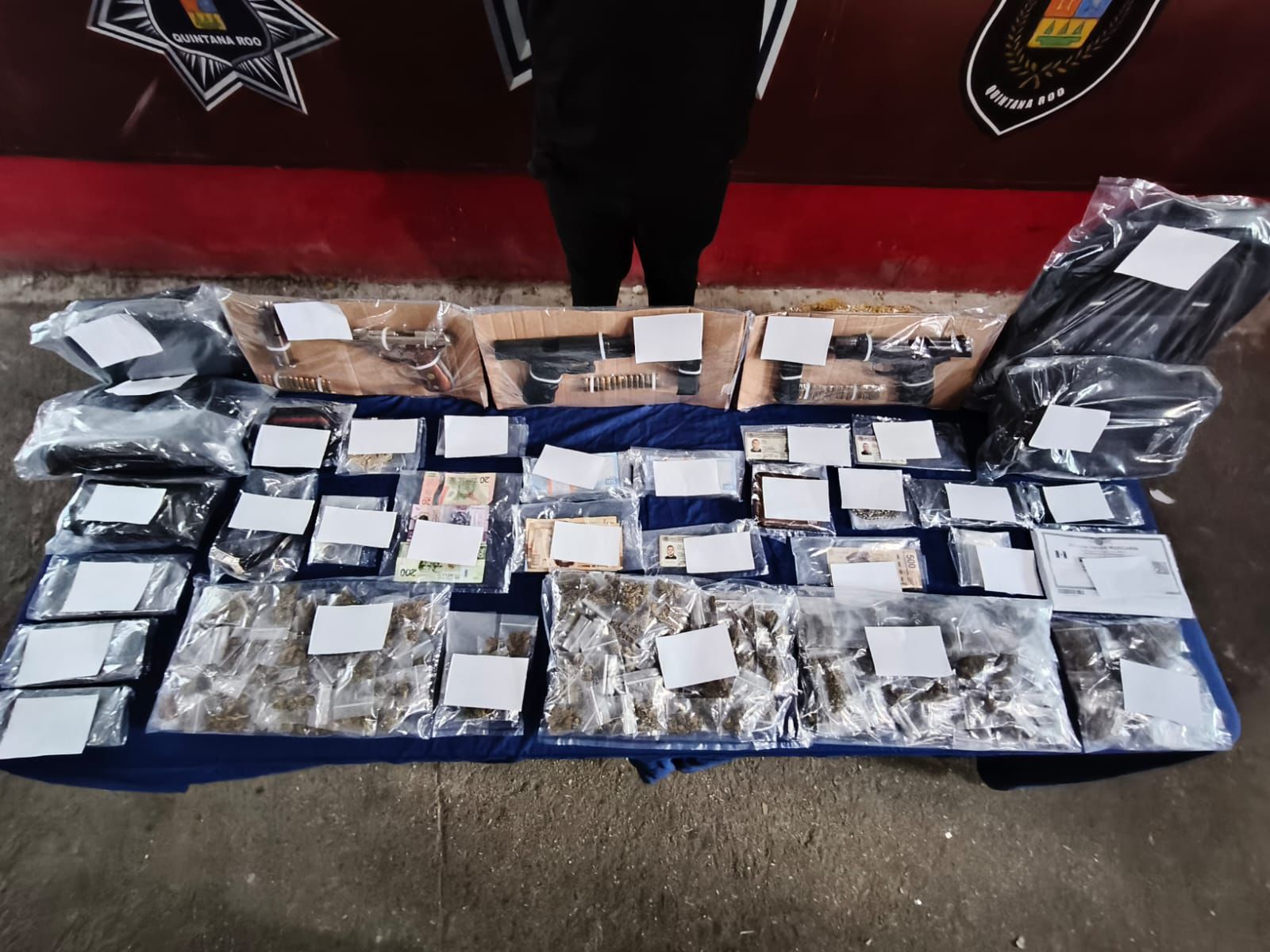 Los cuatro implicados y los artículos asegurados fueron trasladados y puestos a disposición de la Fiscalía Especializada en Combate al Delito de Narcomenudeo para los fines legales correspondientes.