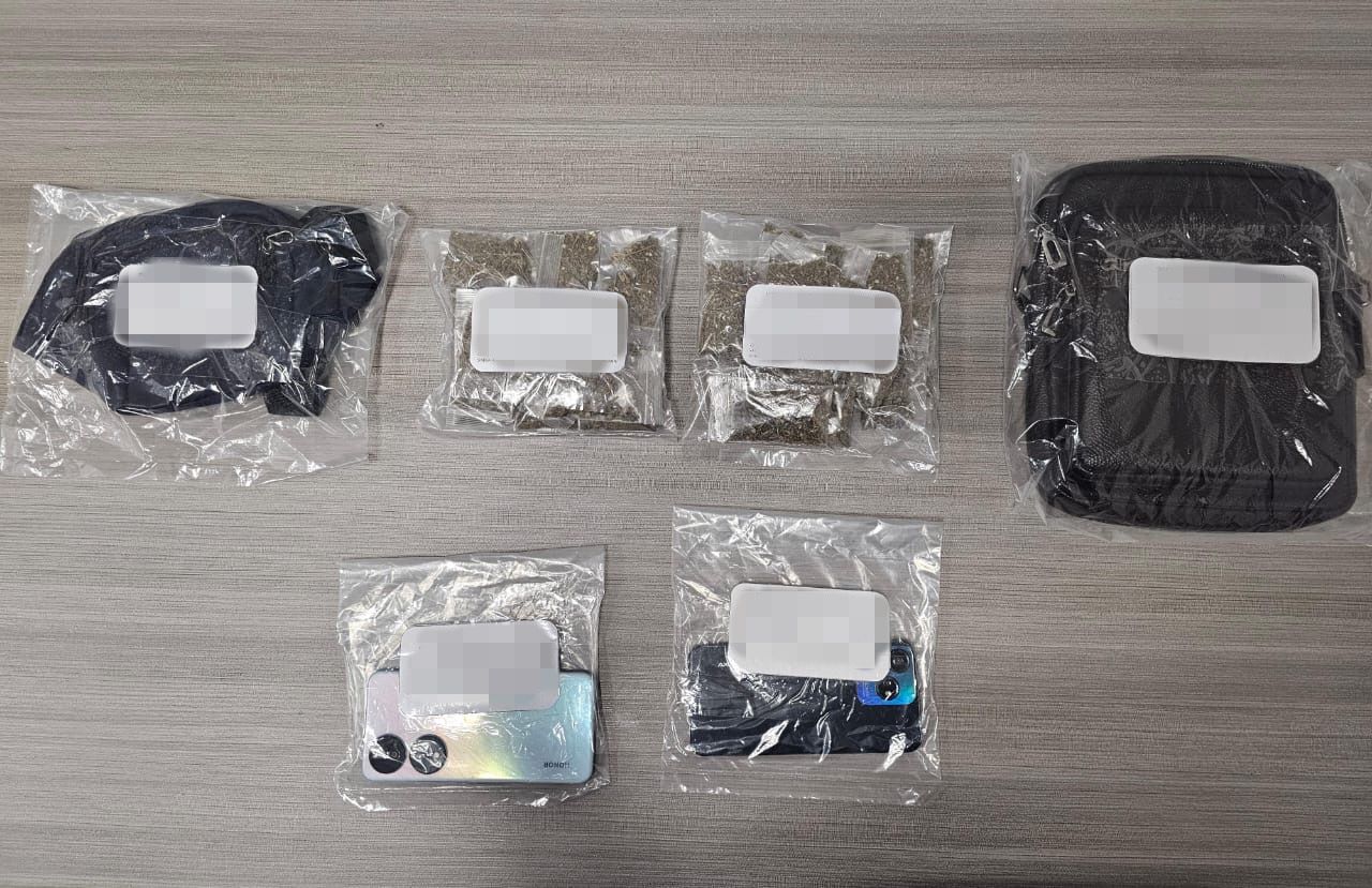 Ambos fueron detectados por los guardianes de seguridad cuando intercambiaban bolsas con presunta marihuana, y al percatarse de la presencia policiaca intentaron huir, sin éxito. Durante la revisión, las autoridades aseguraron 52 envoltorios con vegetal verde con características similares a la marihuana, dos teléfonos celulares, y dos motocicletas marca Italika sin placas de circulación, una de ellas con franjas de color llamativo, lo que llamó la atención de los oficiales.
