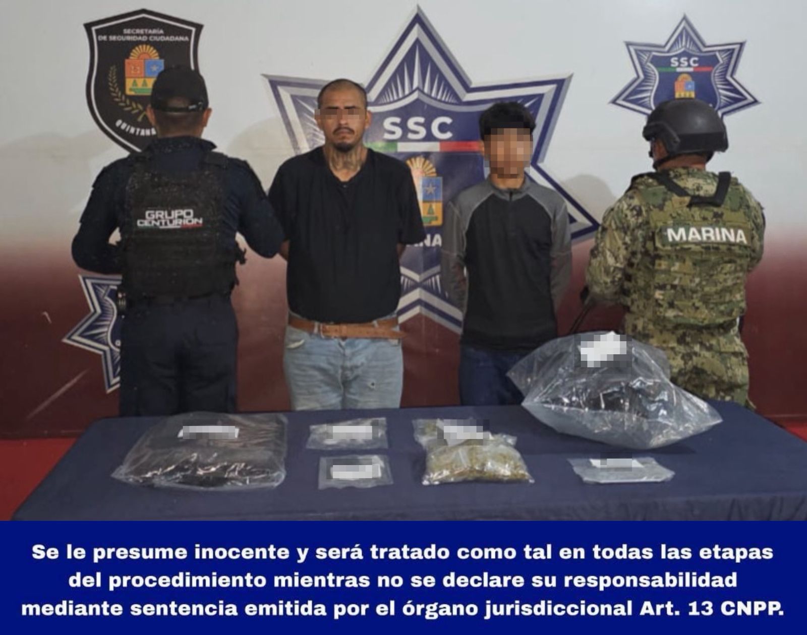 La detención fue realizada por elementos del Grupo Centurión, en coordinación con la Secretaría de Marina, durante un recorrido de vigilancia en la Supermanzana 63, sobre la calle 10.
