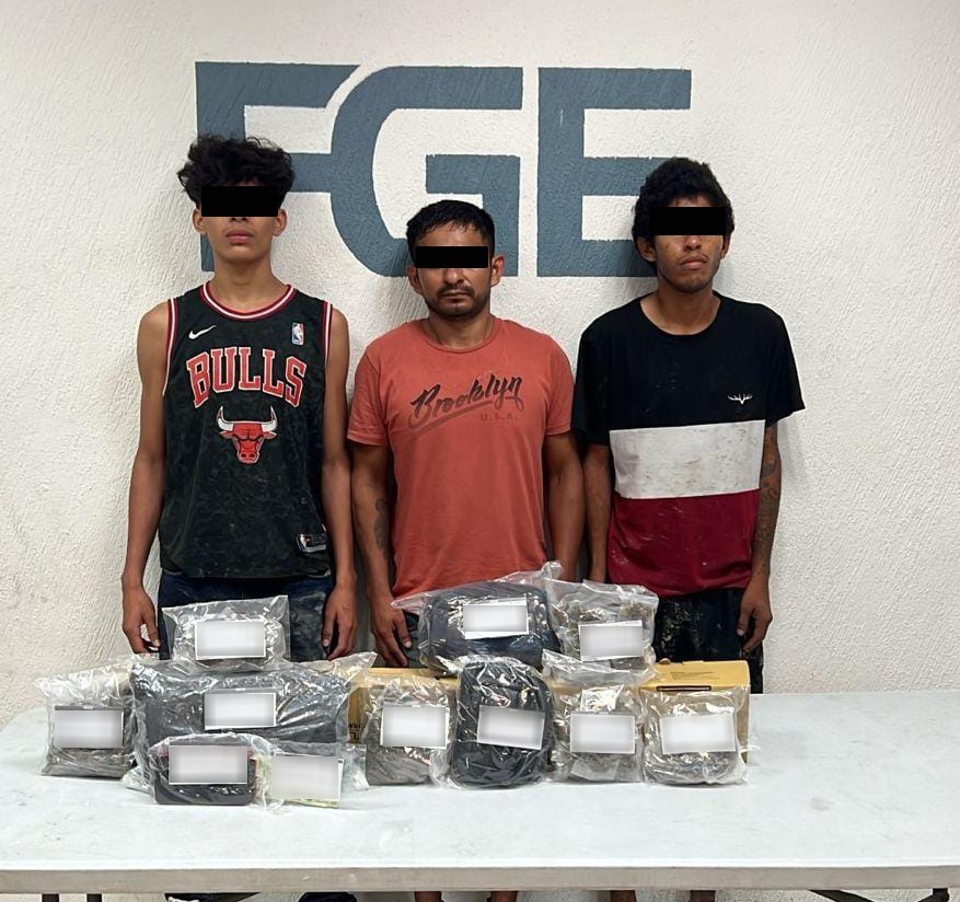 Los detenidos responden a los nombres de Ángel Yoel “N”, Carlos Enrique “N” y Saúl Isaac “N”, quienes fueron detenidos en un estacionamiento y a quienes en la inspección de rutina, les encontraron diversas dosis de hierba verde y seca con las características propias de la droga conocida como marihuana.