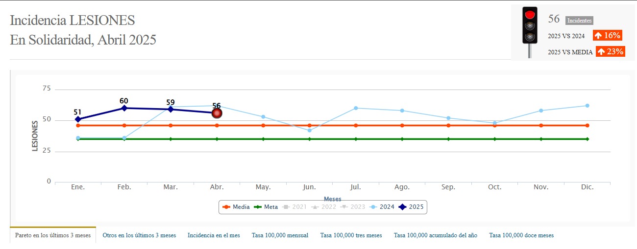 Lesiones: Se registró un incremento del 16%, pasando de 195 casos en el mismo periodo de 2024 a 227 en el actual.